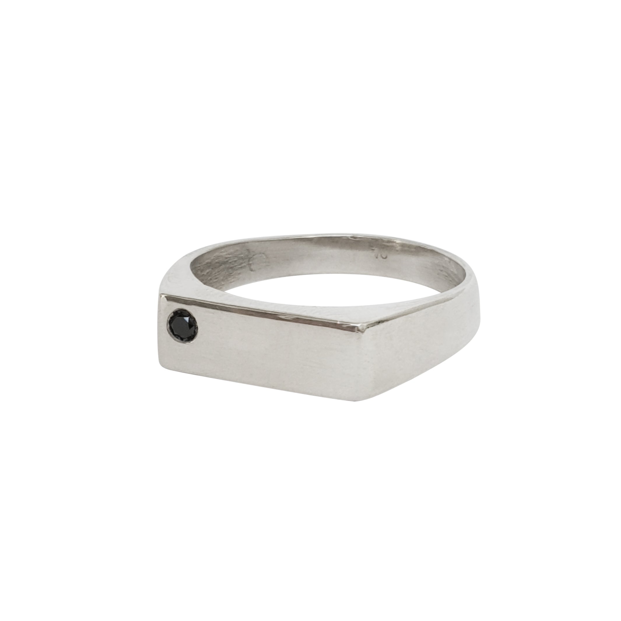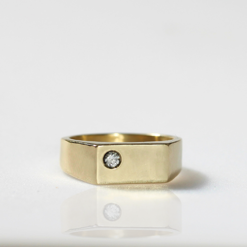 Diamond Set Wide Rectangle Signet - Yellow Gold - Ready to Ship