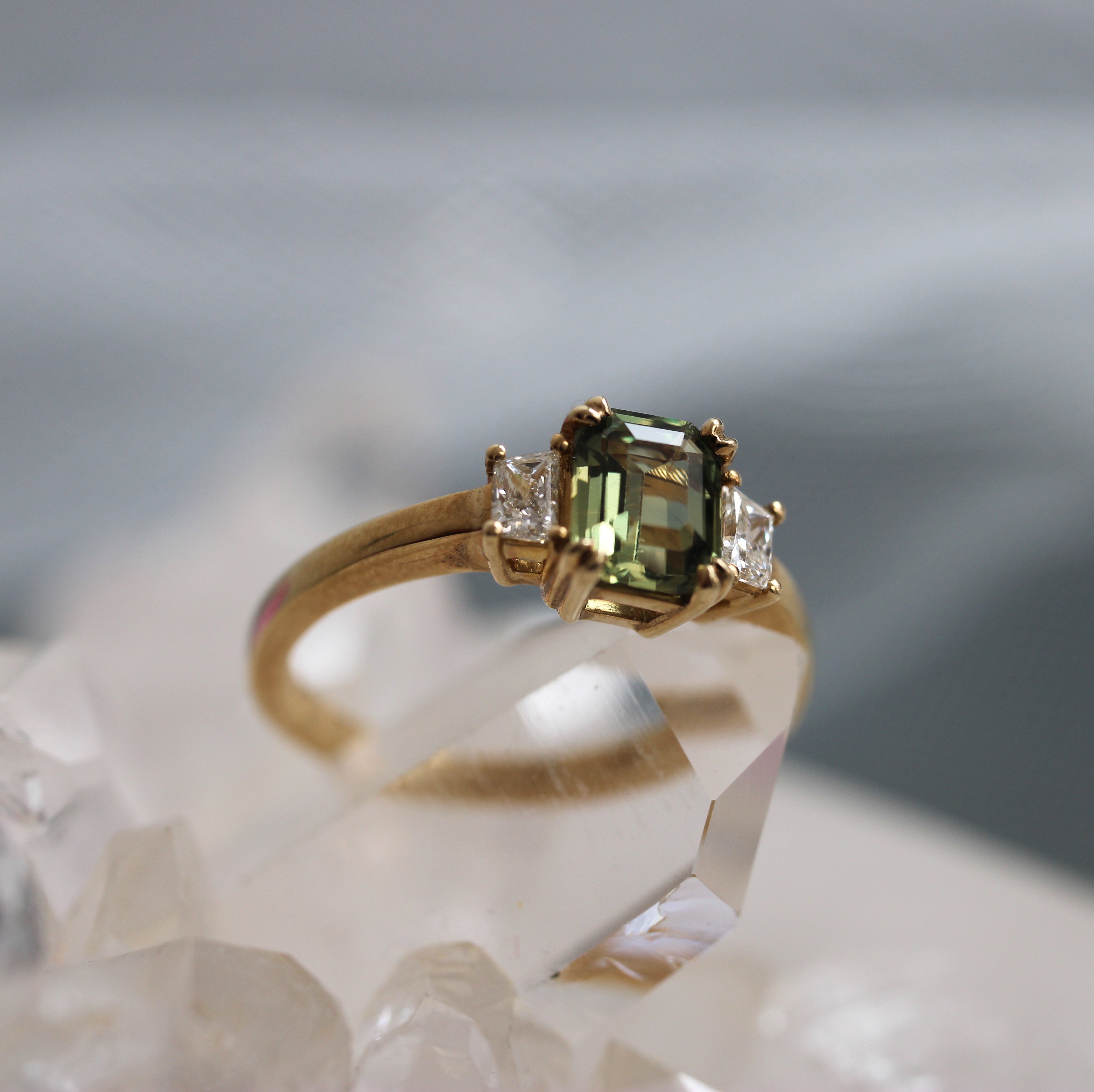 Emerald Cut Green Sapphire Ring – 9ct Yellow Gold - Ready to Ship