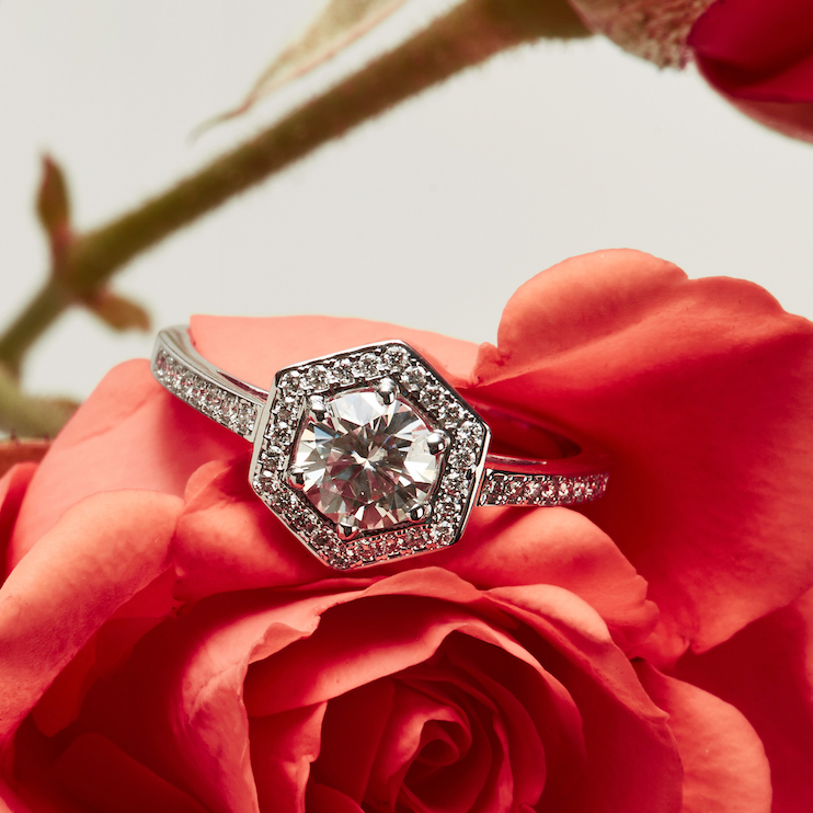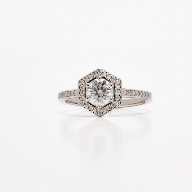 Halo Ring - Moissanite - Yellow Gold - Ready to Ship
