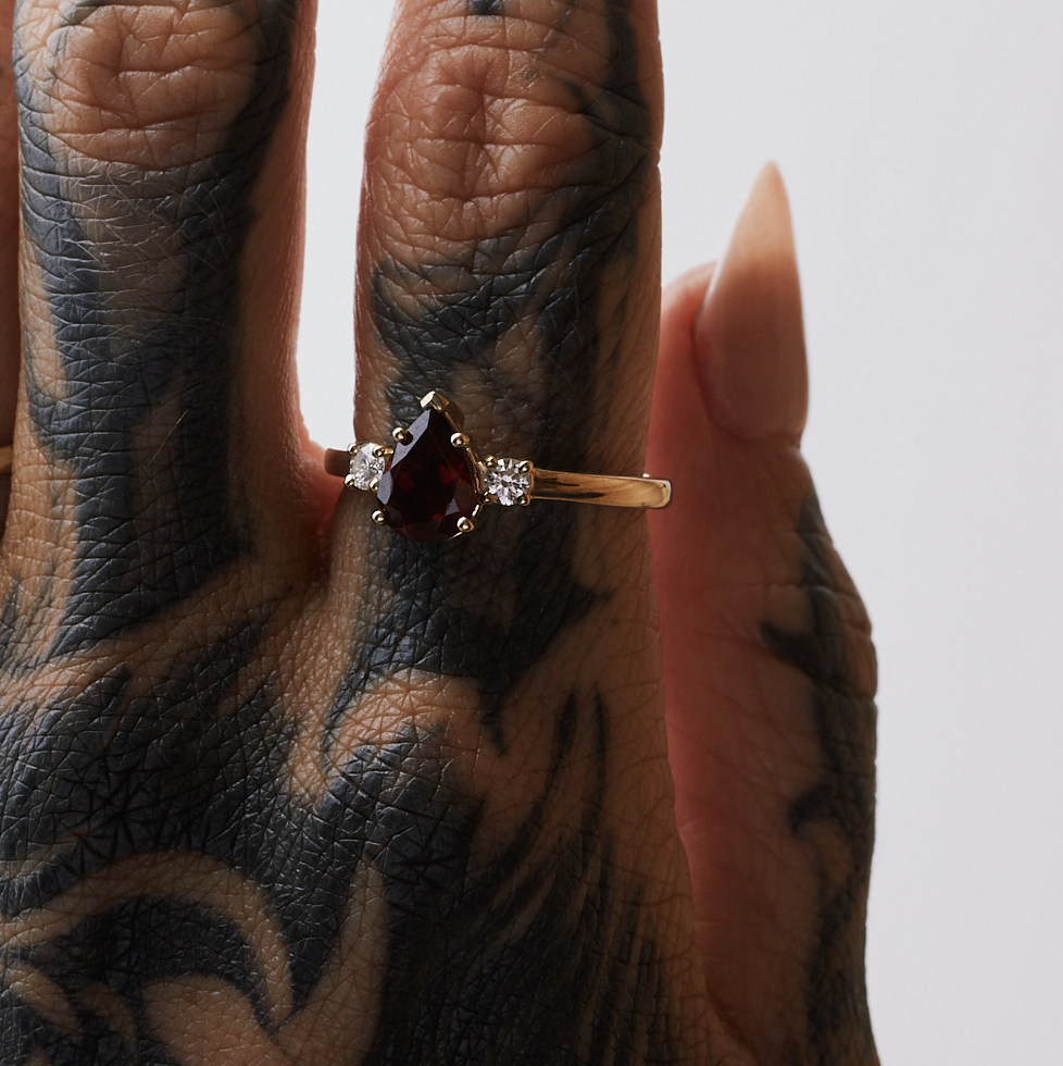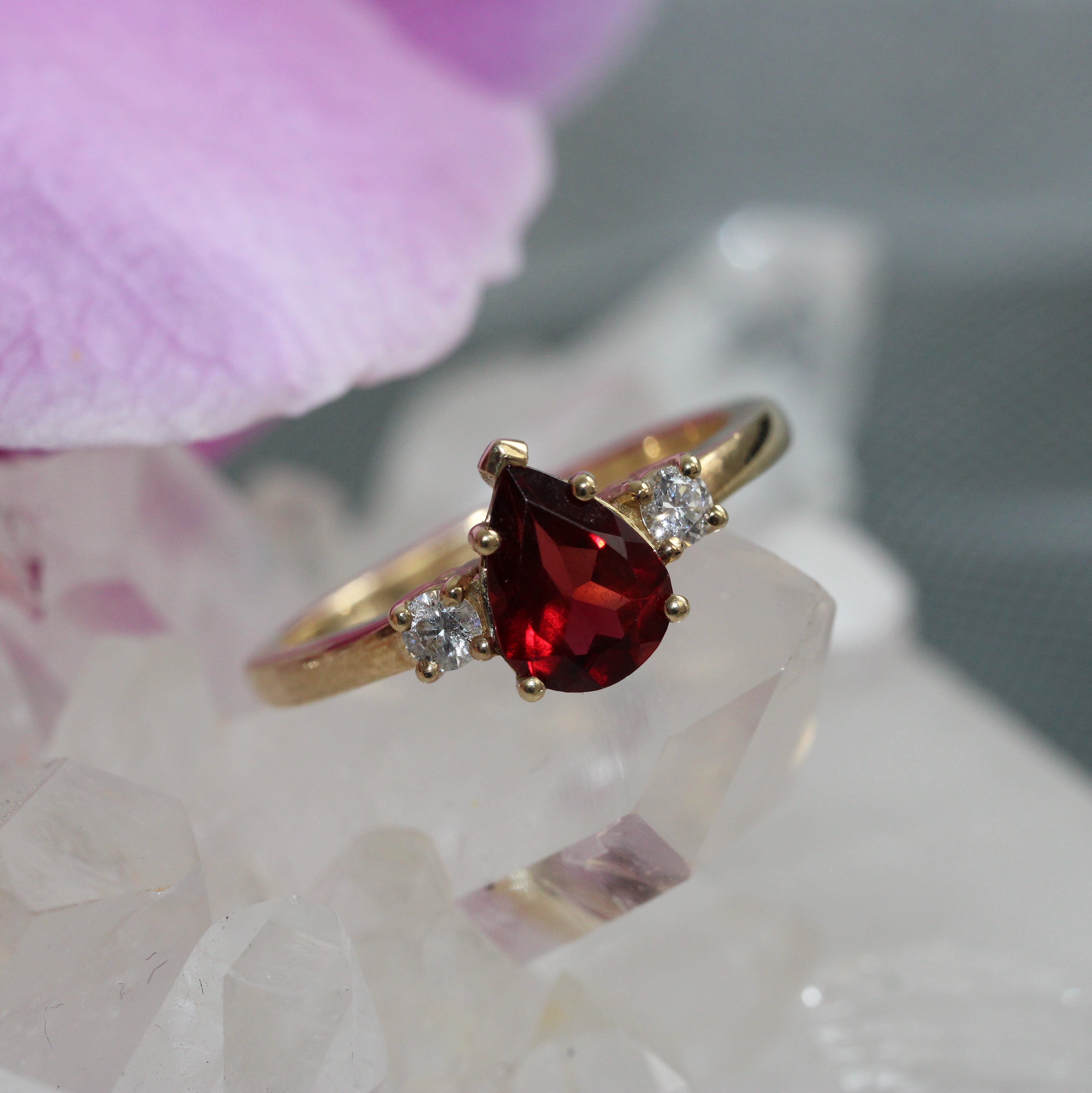 Pear Trinity - Garnet - Yellow Gold - Ready to Ship