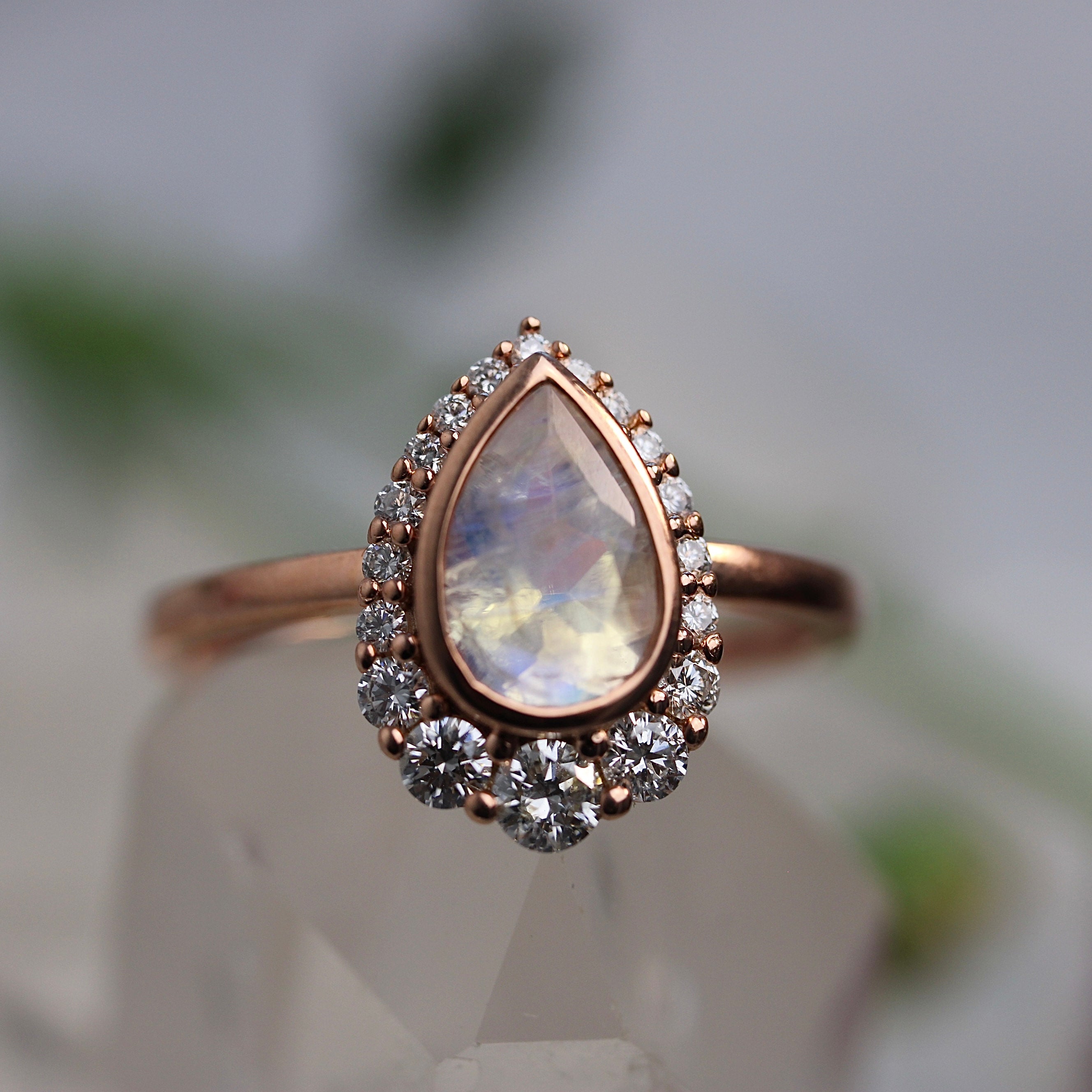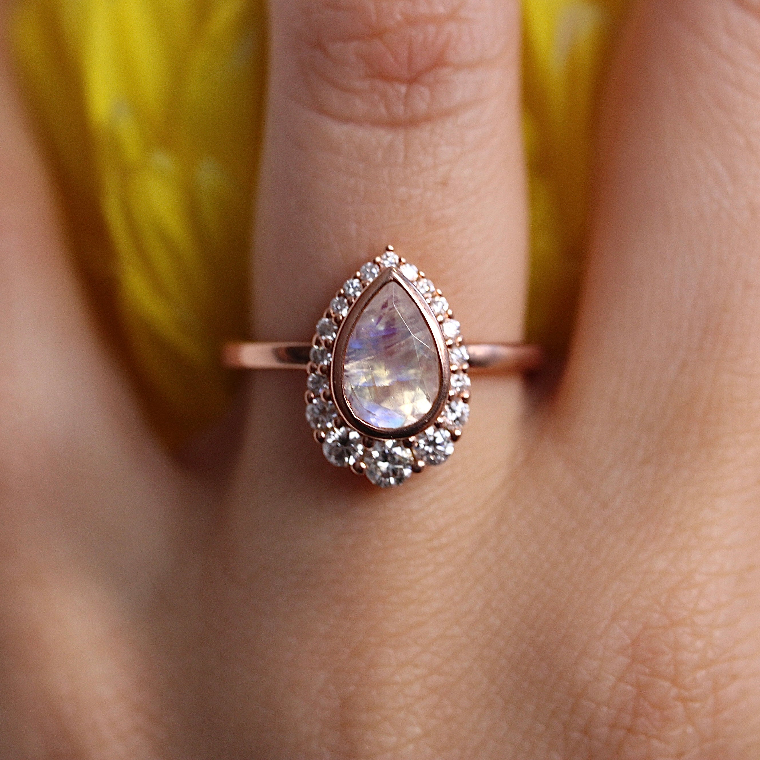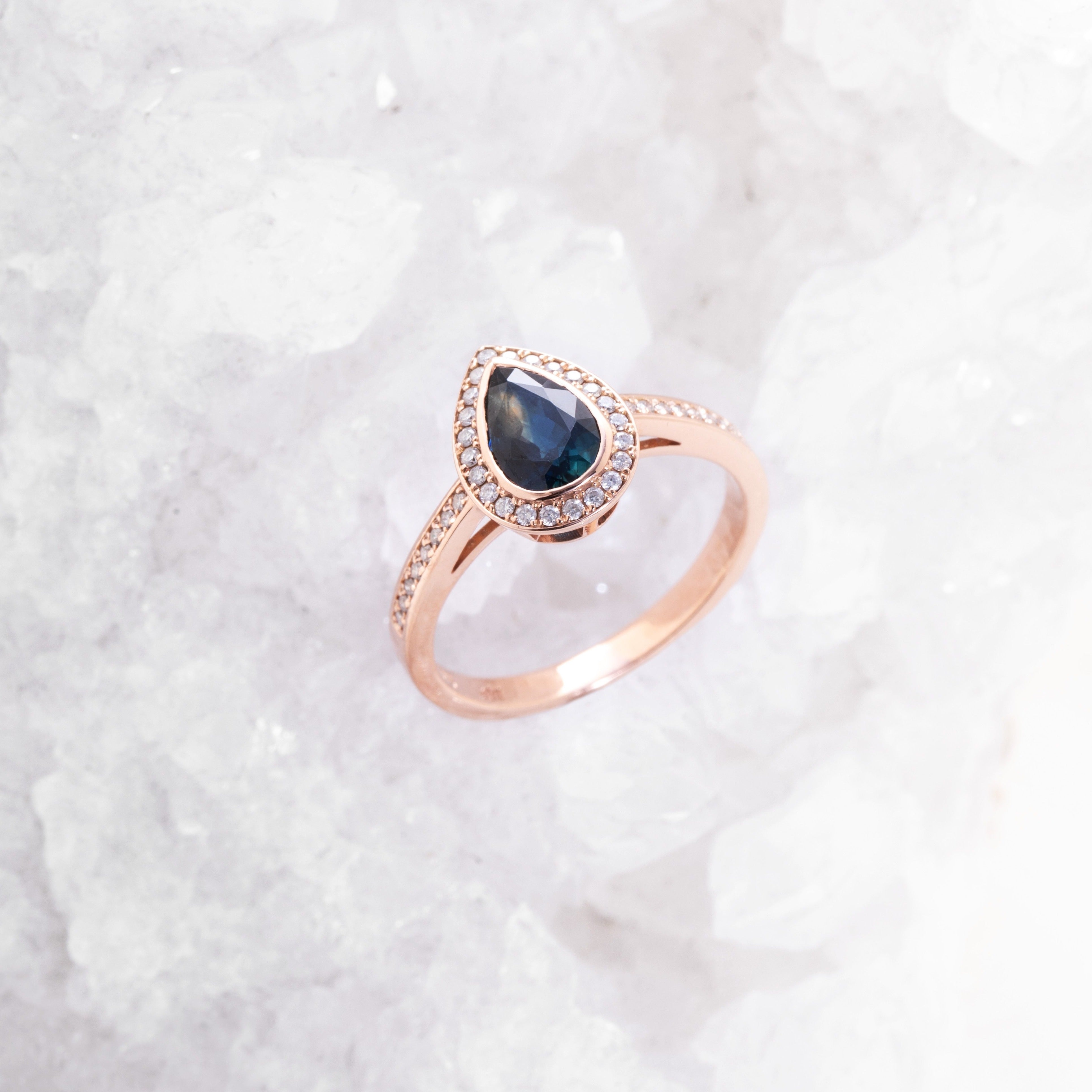 Pear Halo Ring - Bezel Set