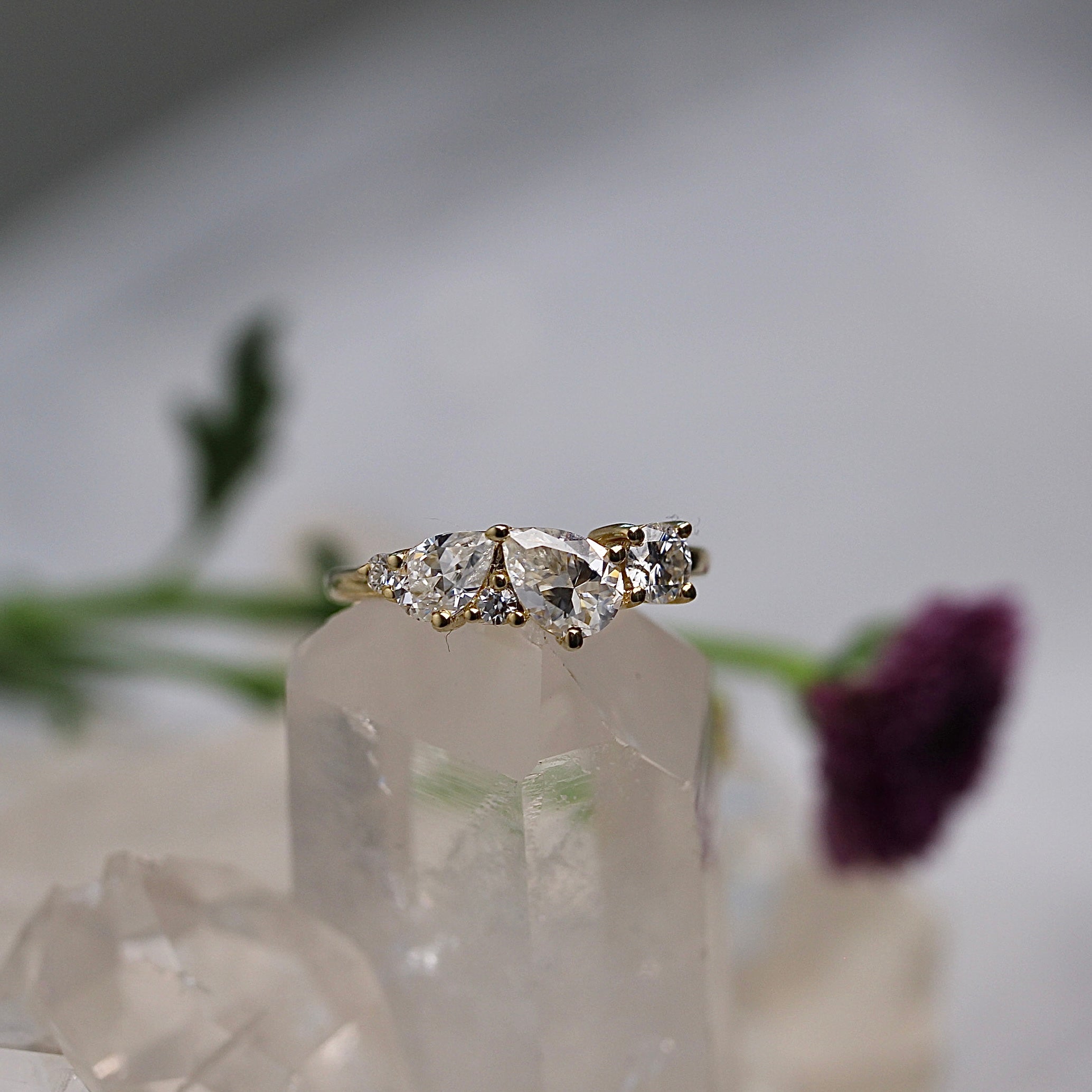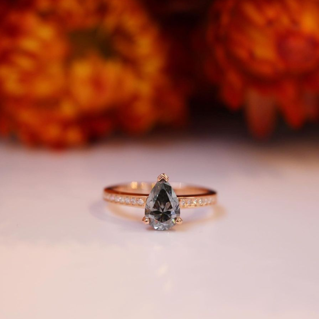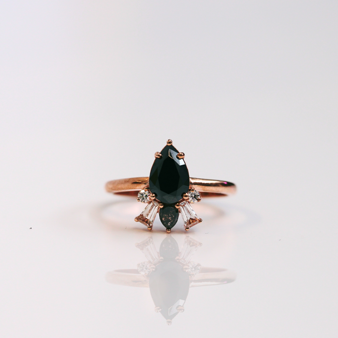 Bespoke - 0.62CT Pear Salt + Pepper Ivory Ring - Yellow Gold