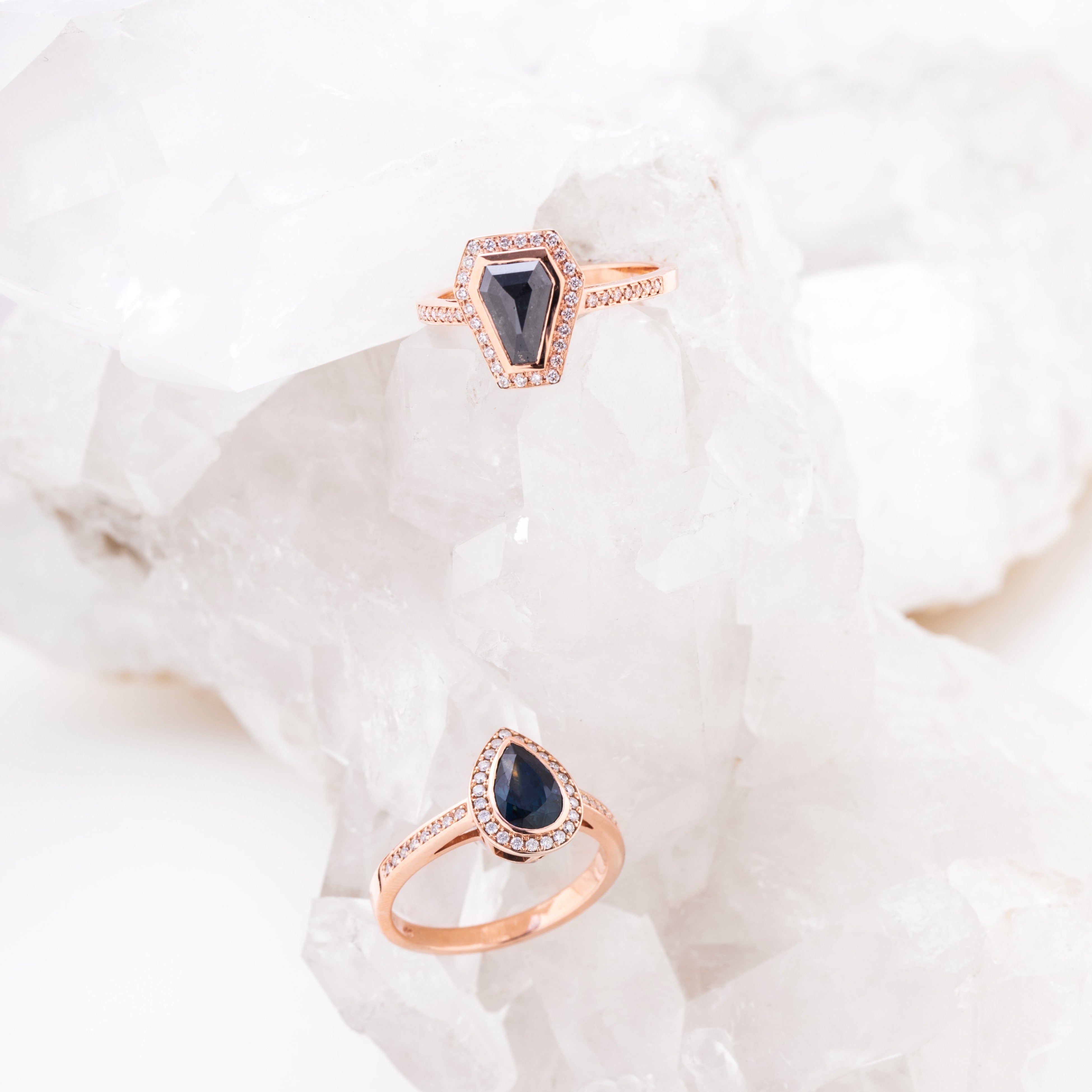 Bespoke - Marquisse Salt + Pepper Diamond Ring Set- Yellow Gold