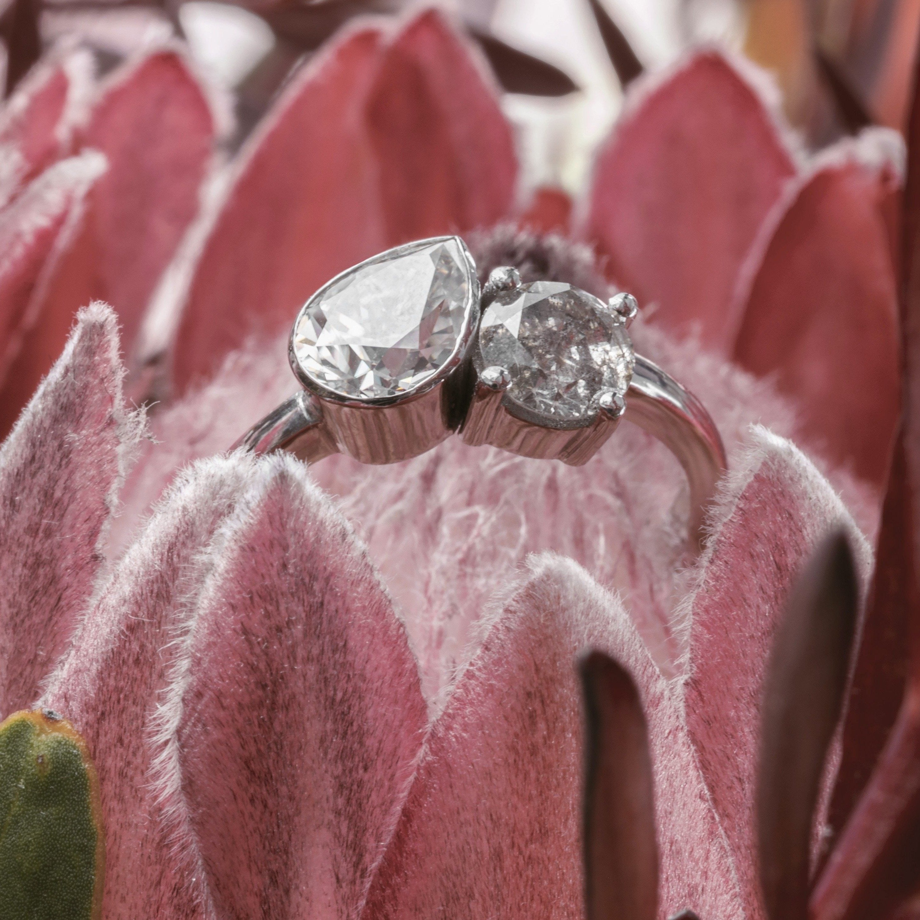 Bespoke - Hex Halo - Salt + Pepper Diamond - 18CT White Gold