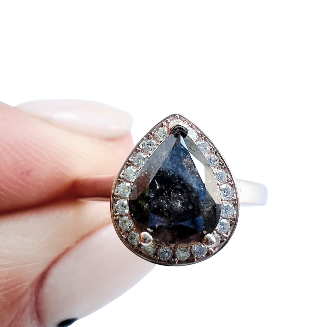 1.5CT Pear Salt + Pepper Halo - Ready To Ship