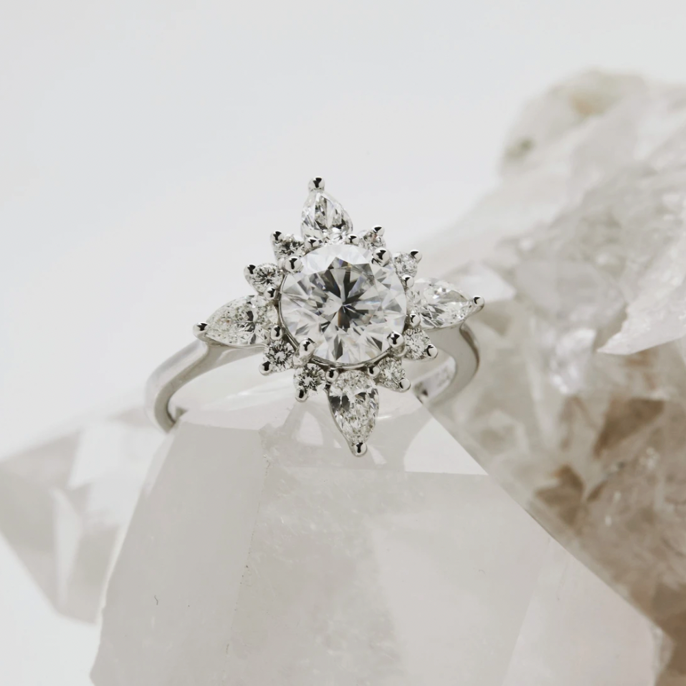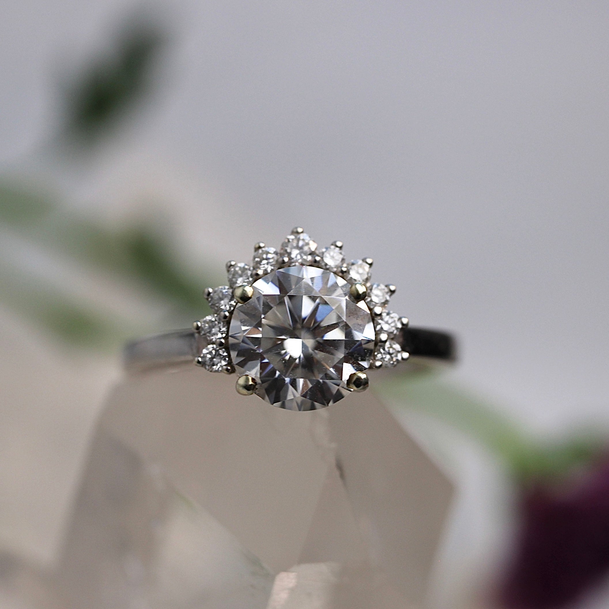 Lotus Round - Moissanite - White Gold - Ready to Ship
