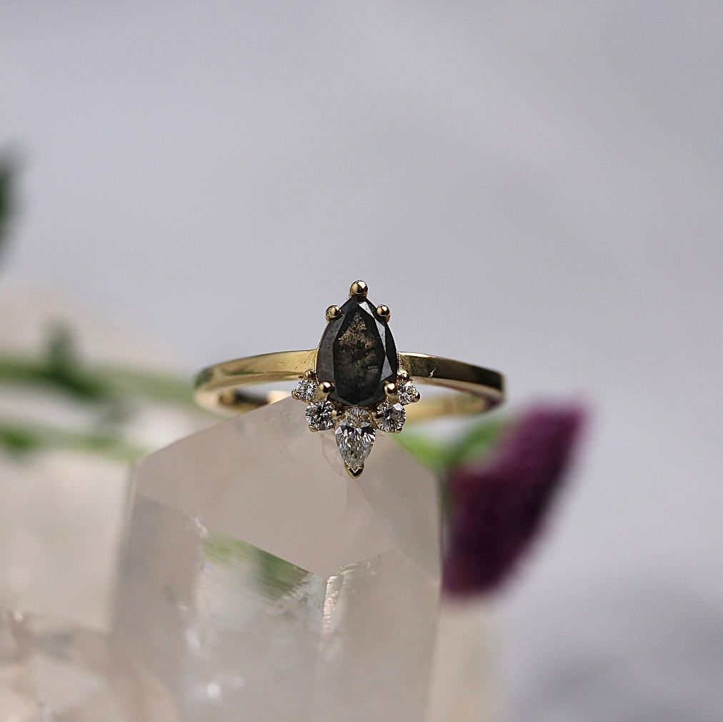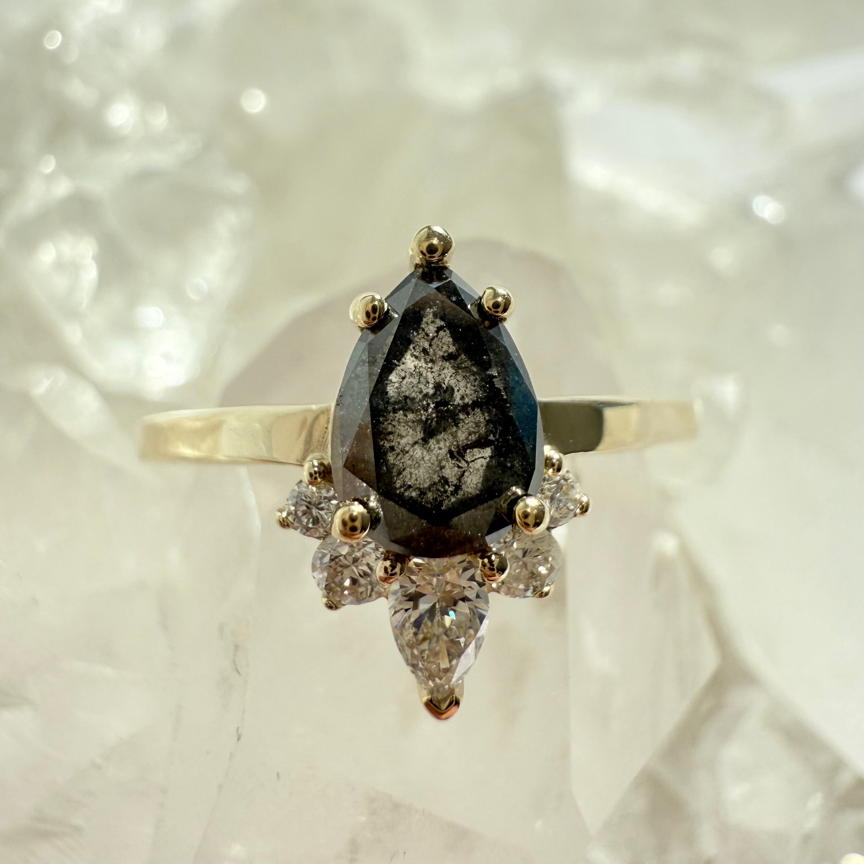 SALE - Marquise Keiko - 1.4ct Salt + Pepper Diamond - 9ct Yellow Gold - Ready to Ship