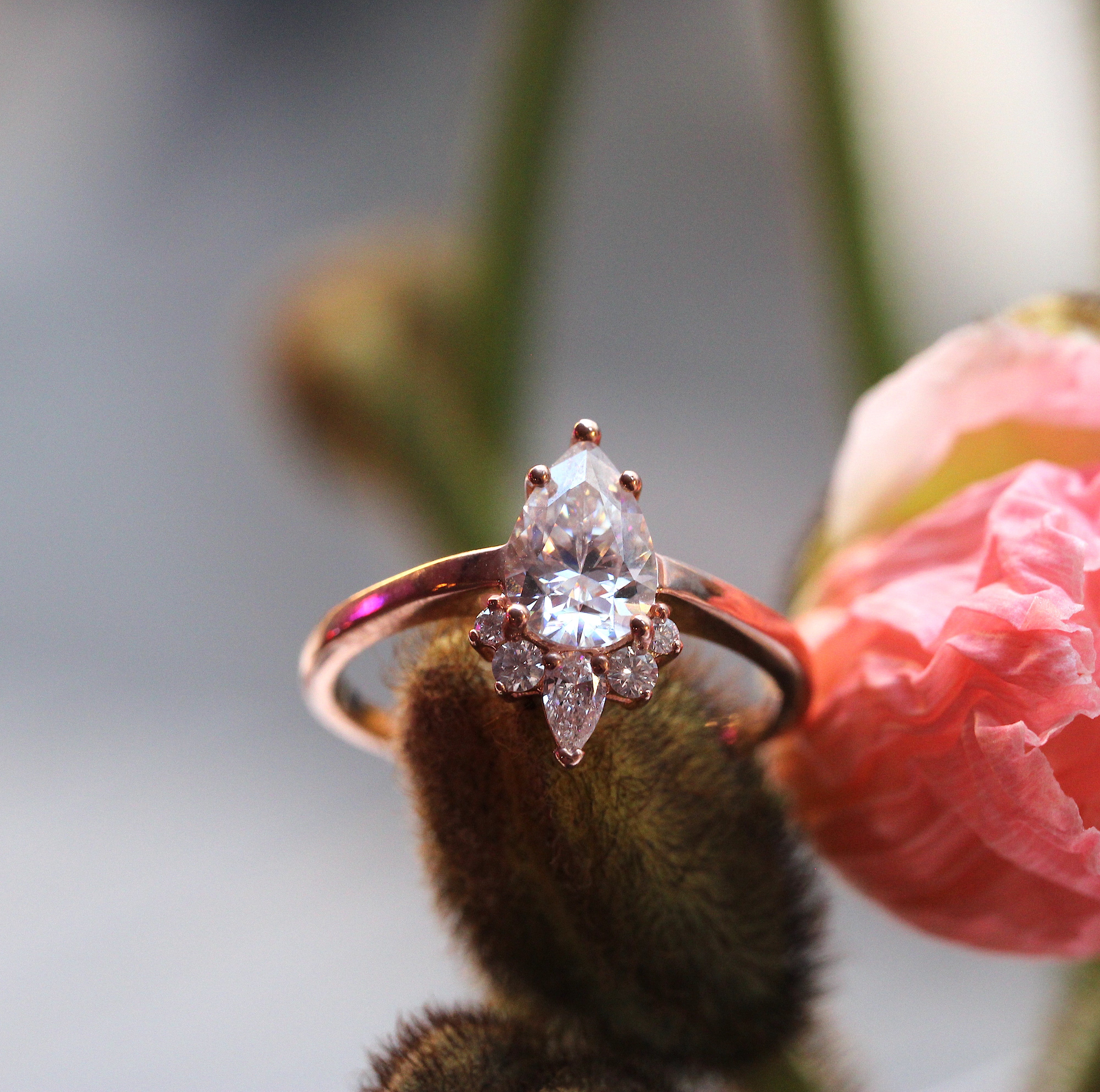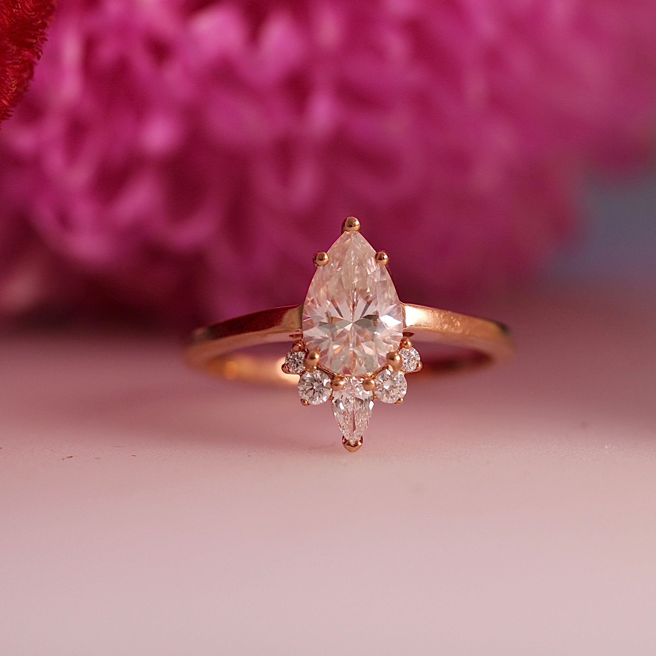 SALE - Pear Halo - Champagne Moissanite - Rose Gold - Ready to Ship