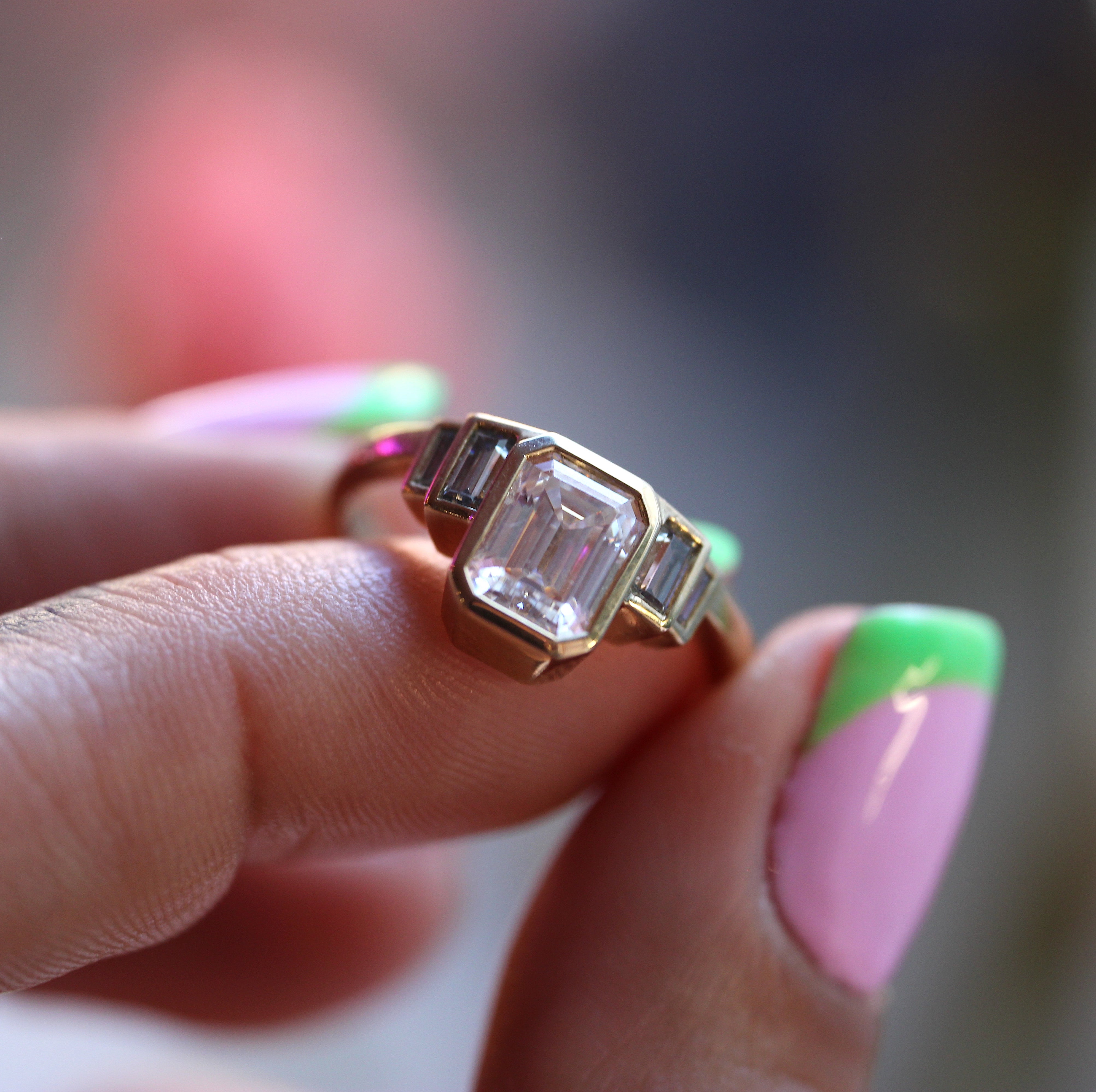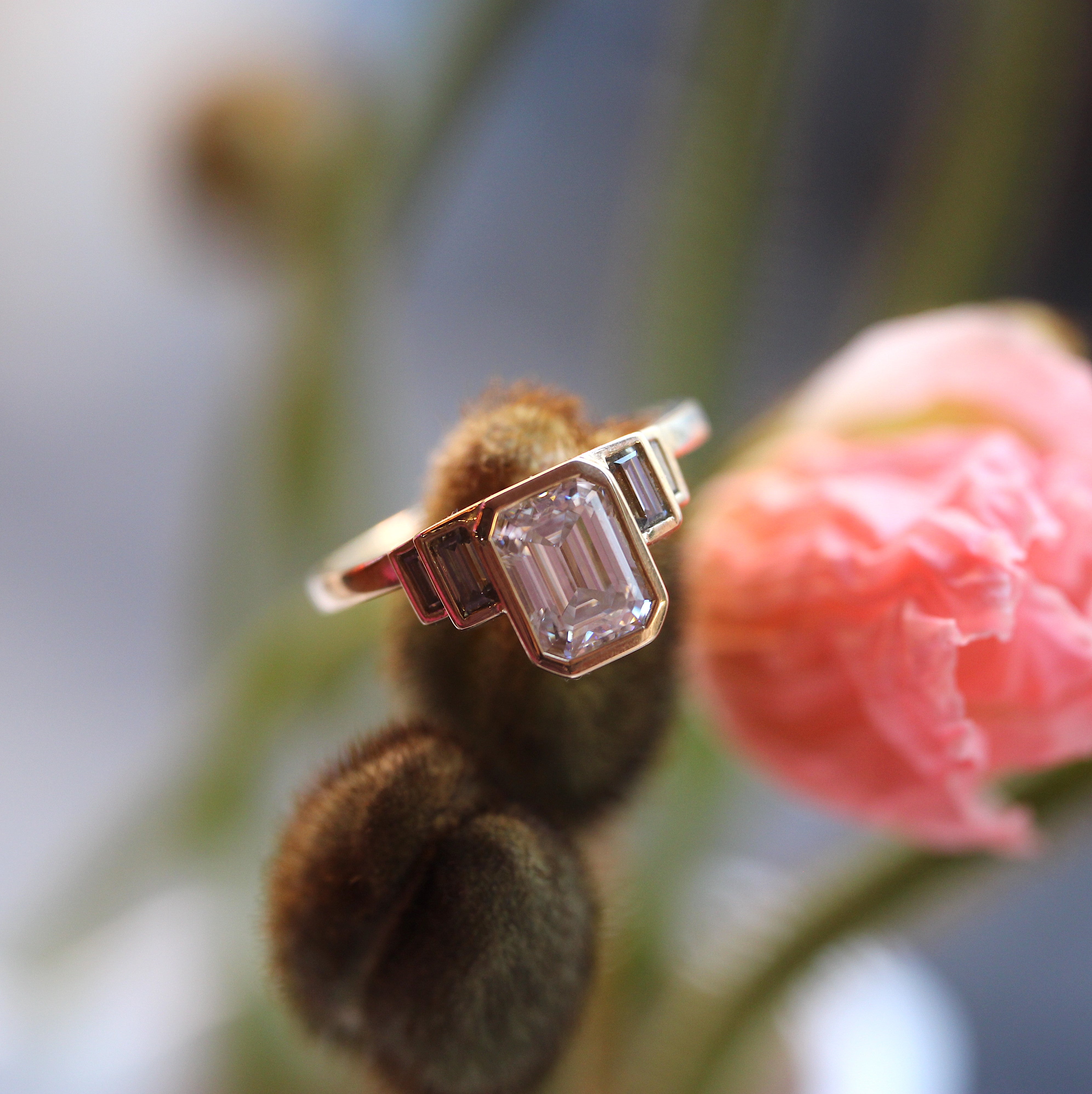 SALE - Asscher Cut Solitaire - Grey Spinel - Rose Gold - Ready to Ship