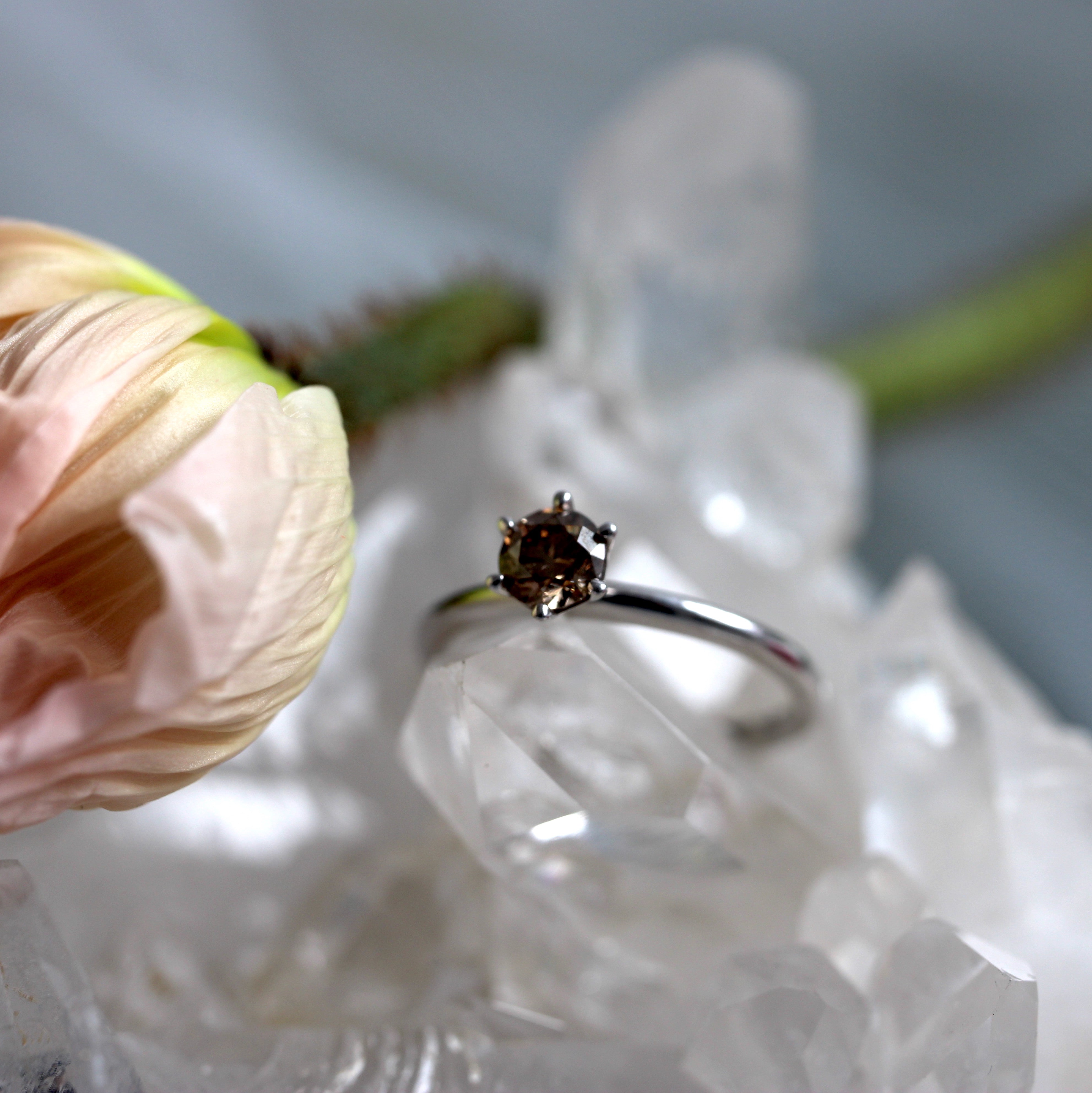 Dream Solitaire - Champagne Diamond - White Gold - Ready to Ship