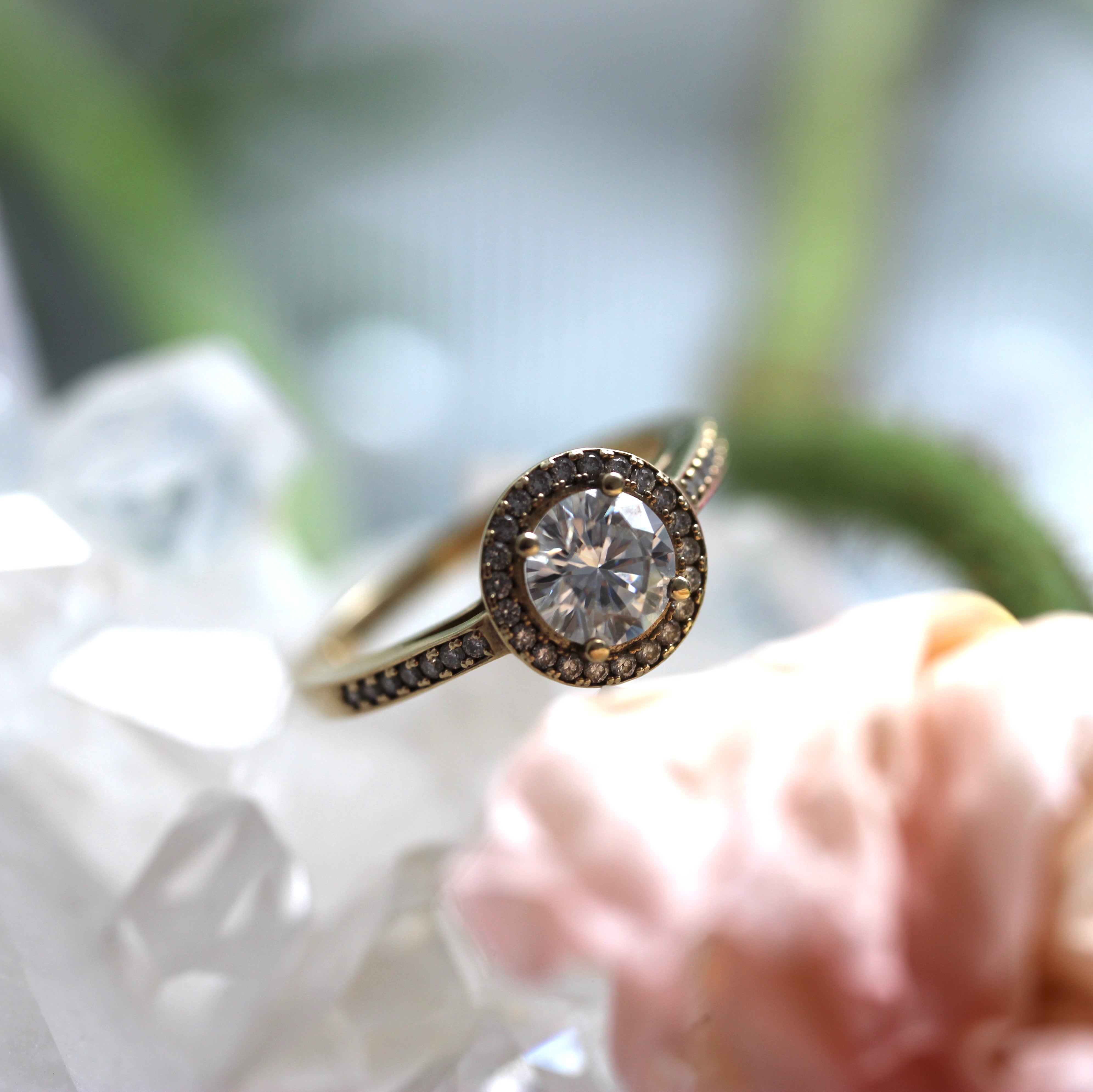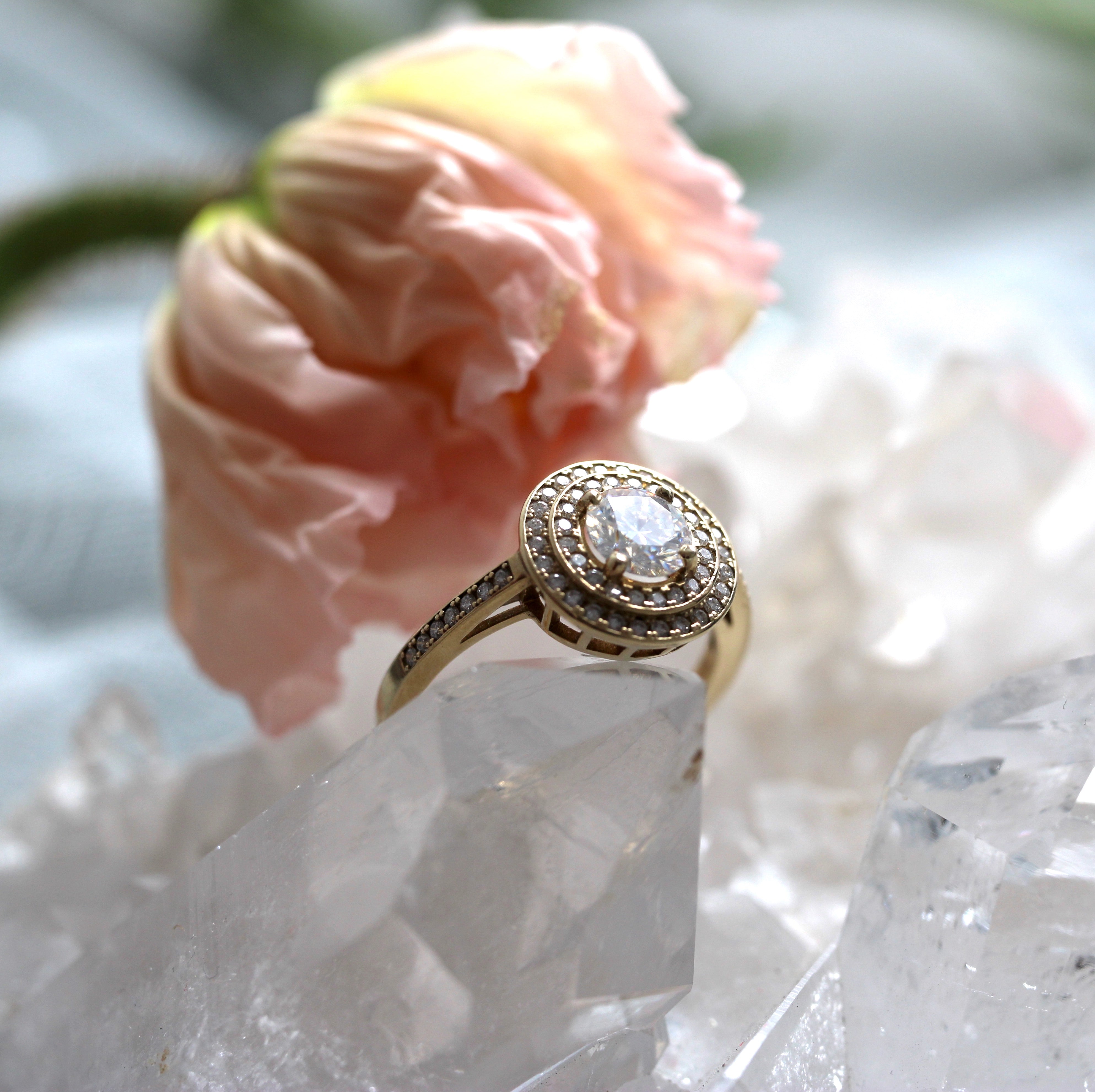 Halo Ring - Moissanite - Yellow Gold - Ready to Ship