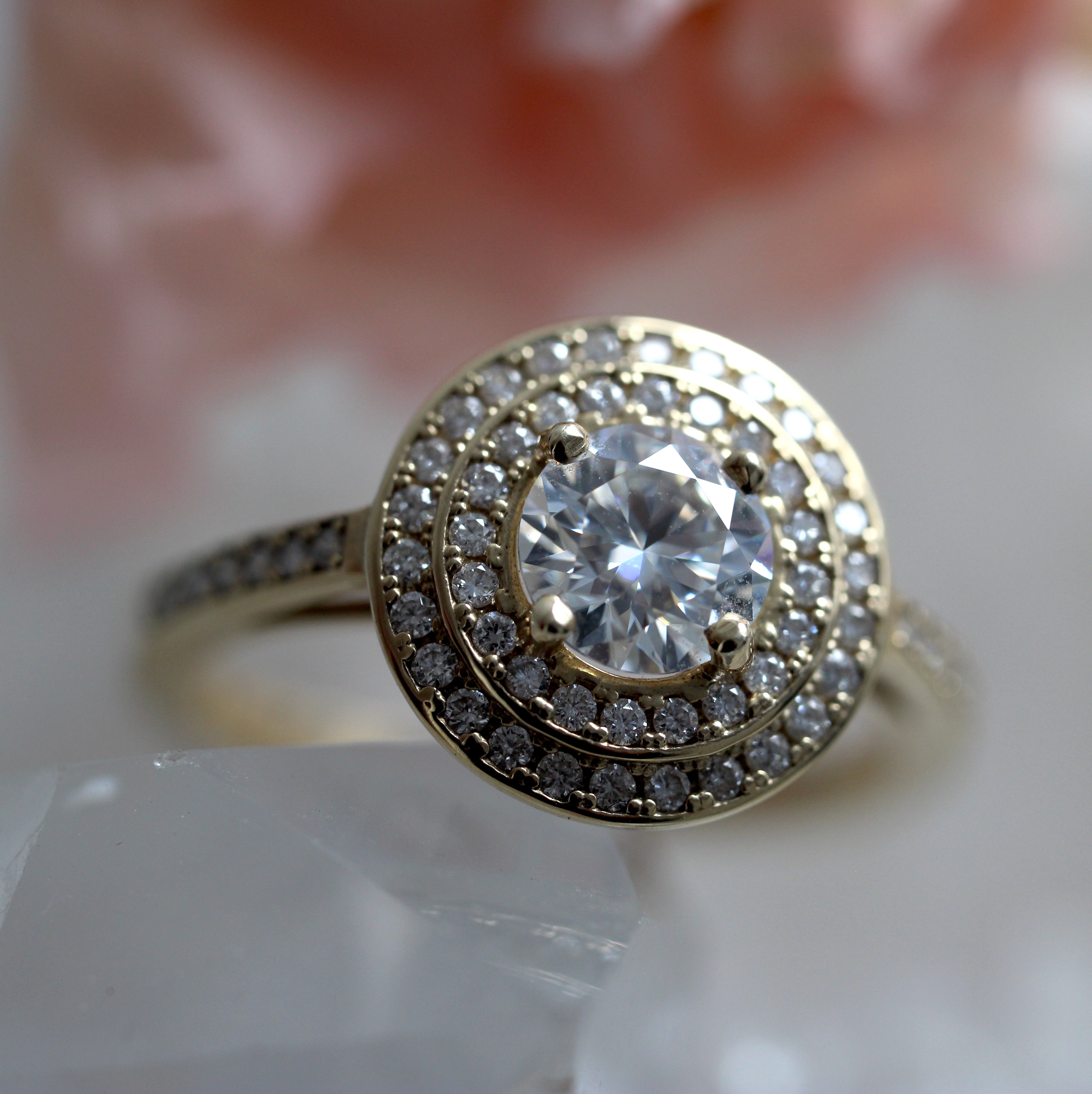 Double Halo - Moissanite - Yellow Gold - Ready to Ship