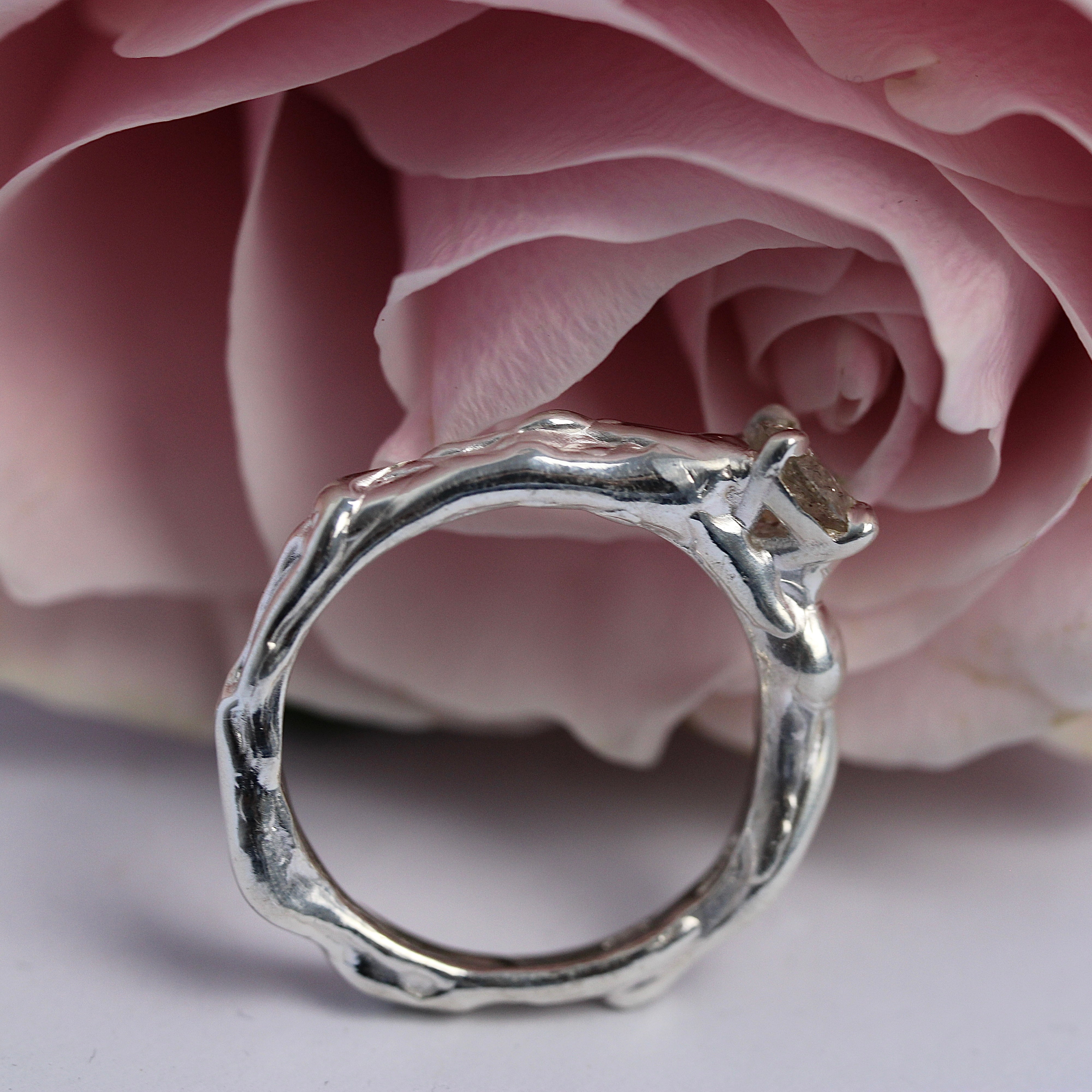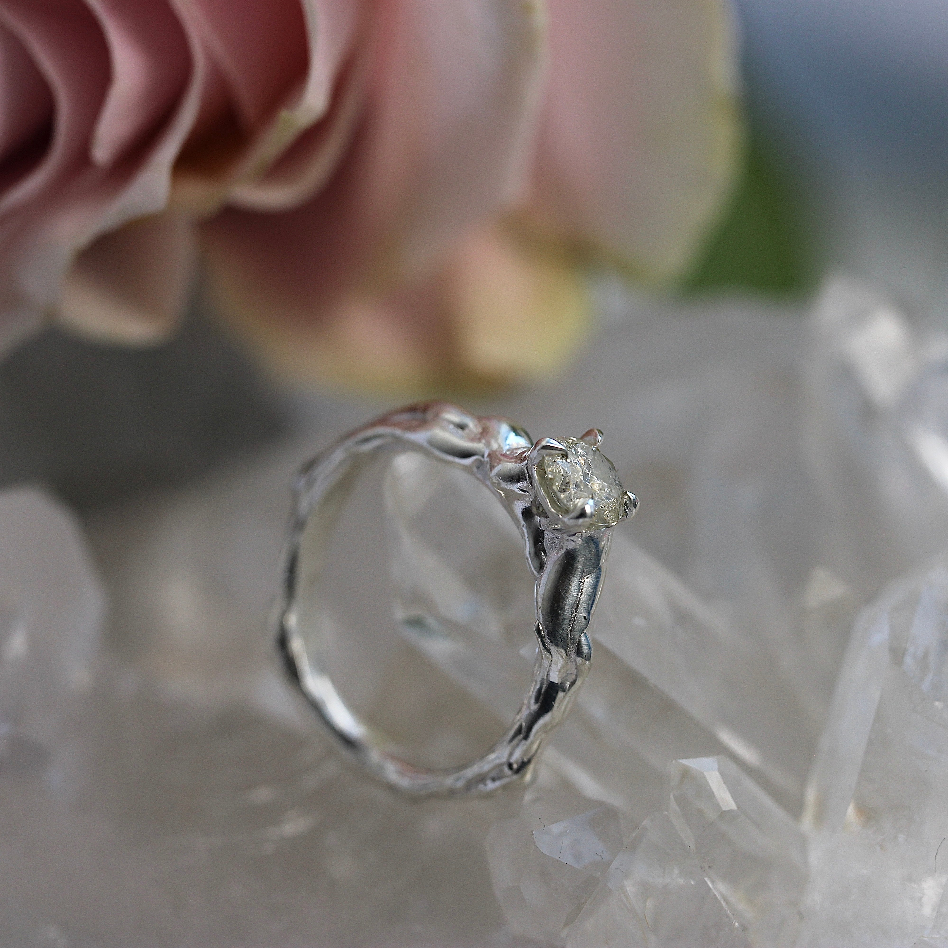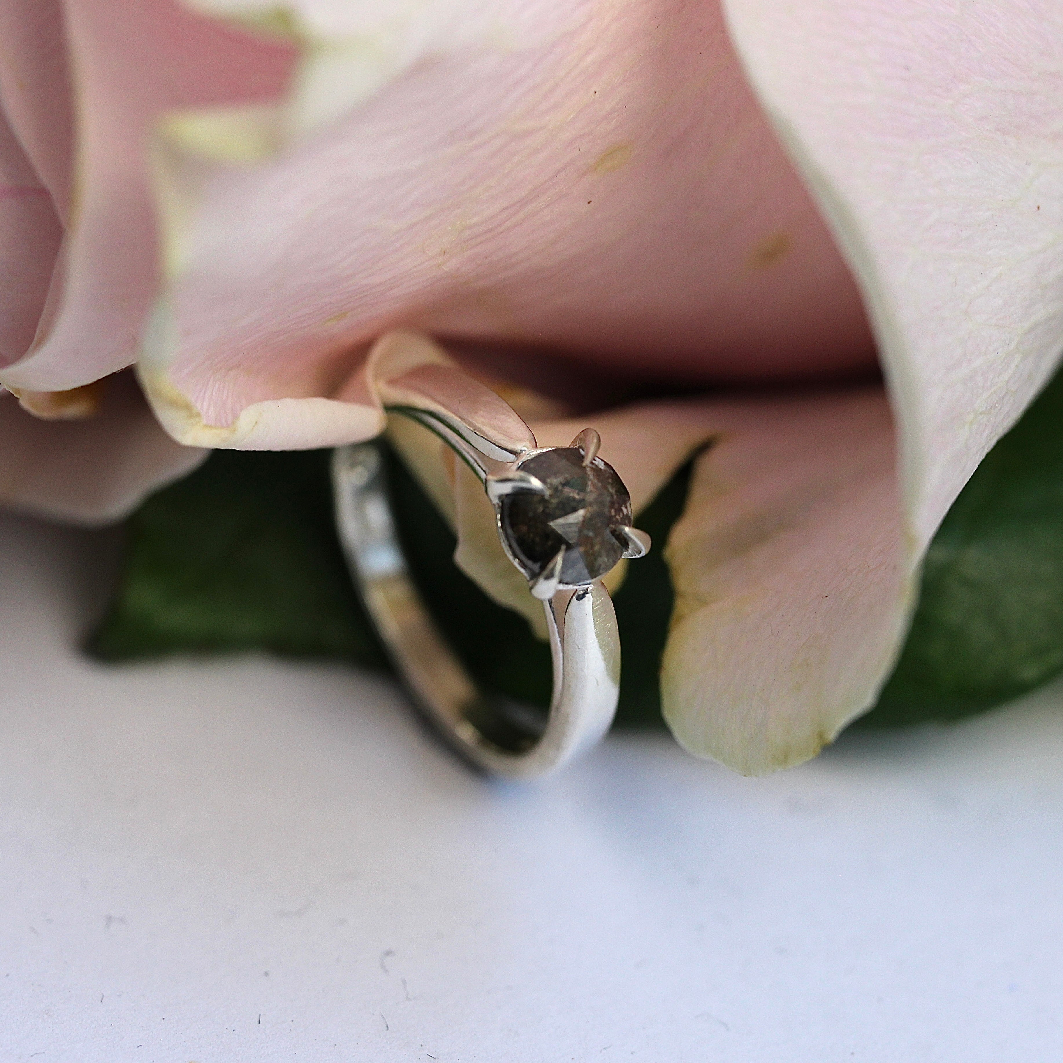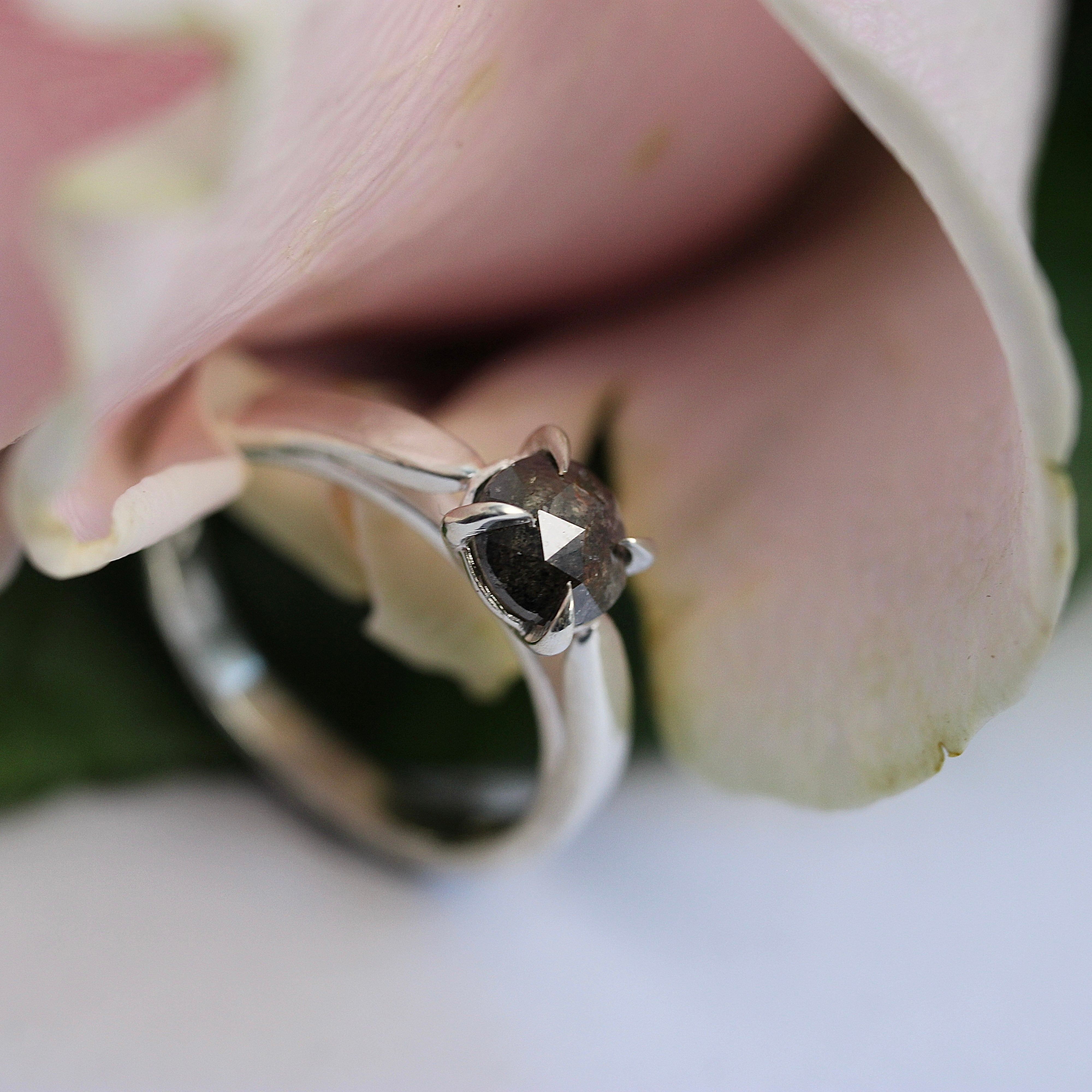 SALE - Dark Lily Solitaire – Sterling Silver & Salt + Pepper Diamond