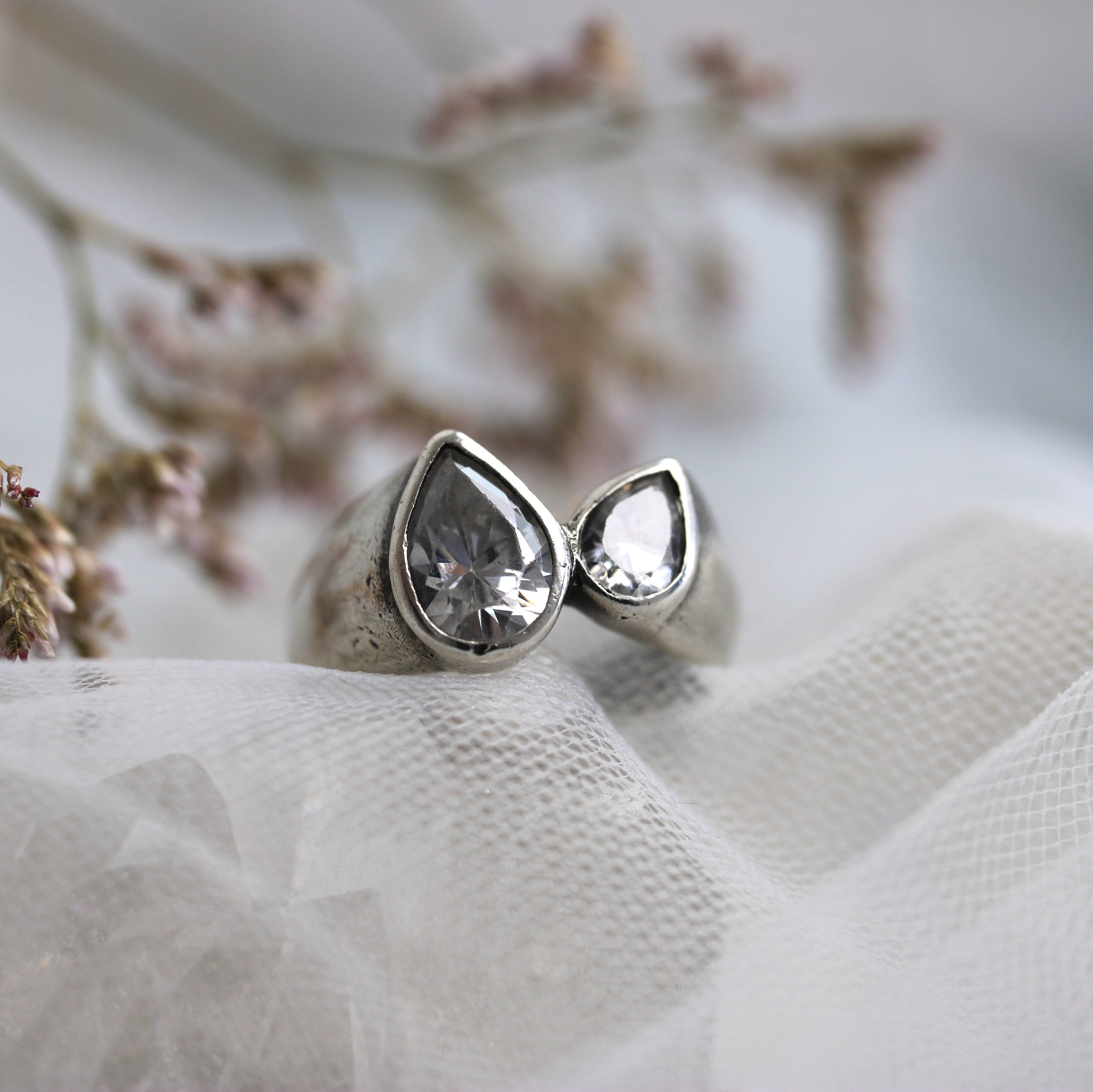 SALE - Grey Moissanite Trinity Ring