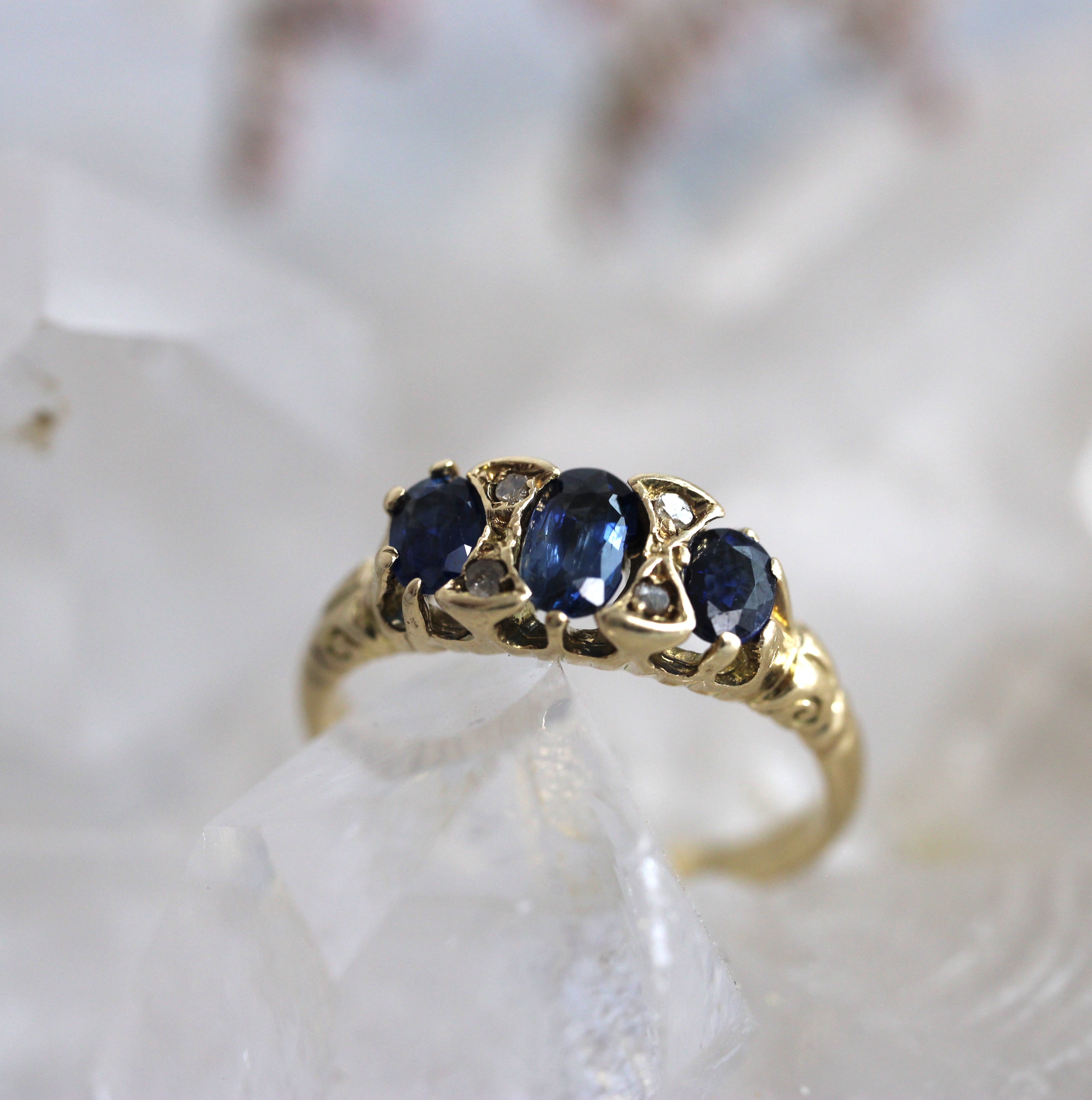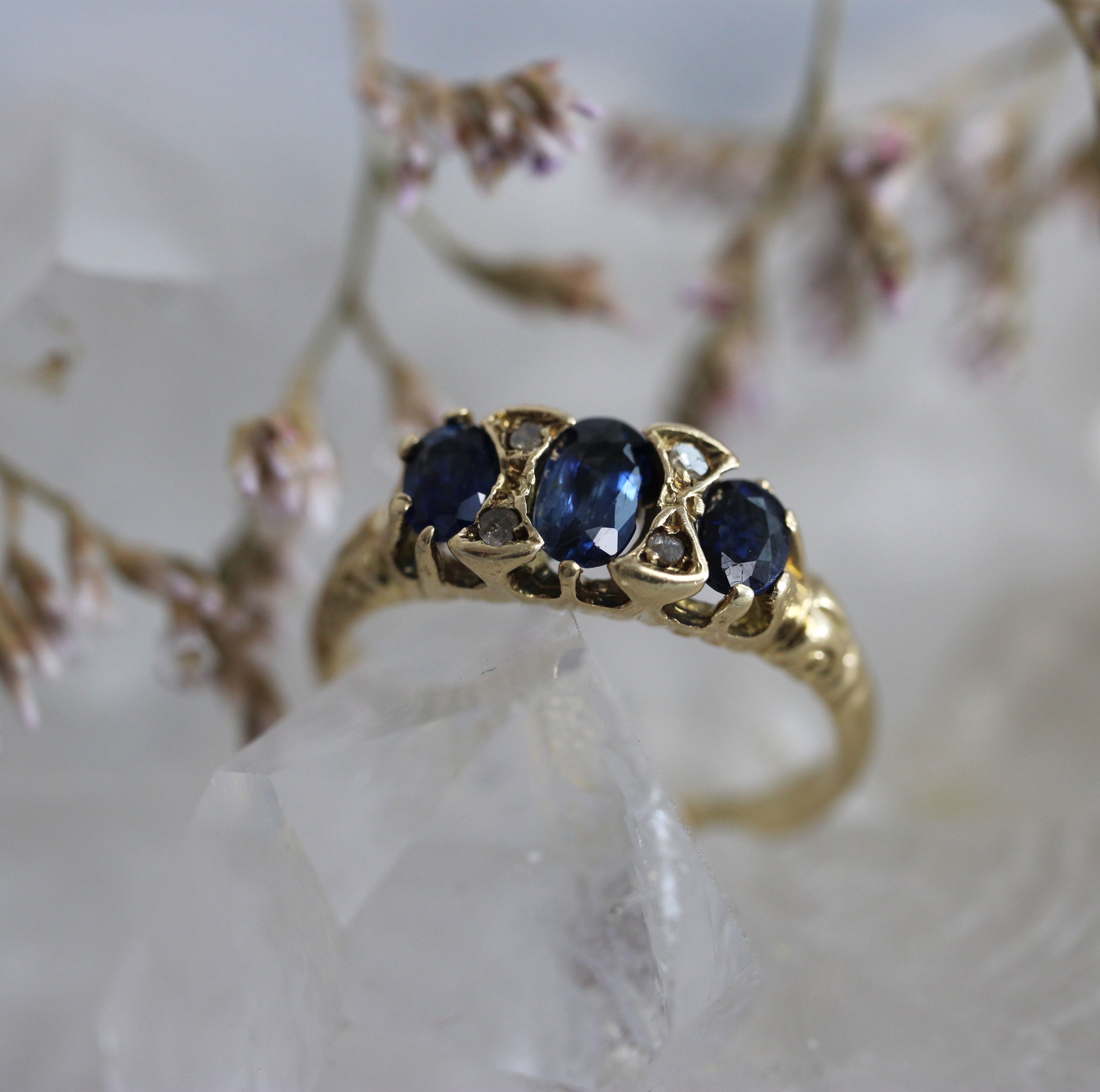 VINTAGE BIJOUX - Sapphire + Single Cut Diamond Ring