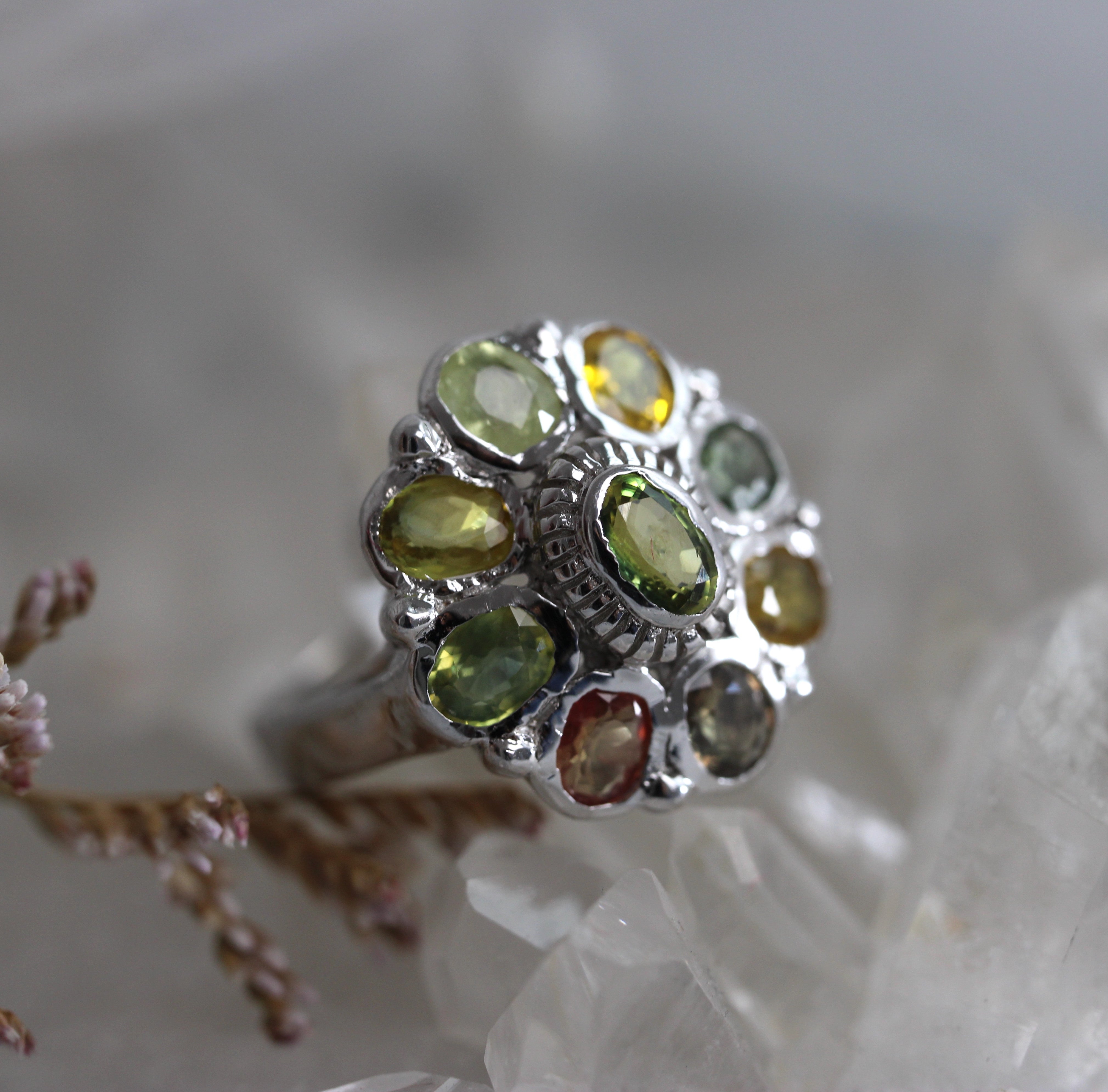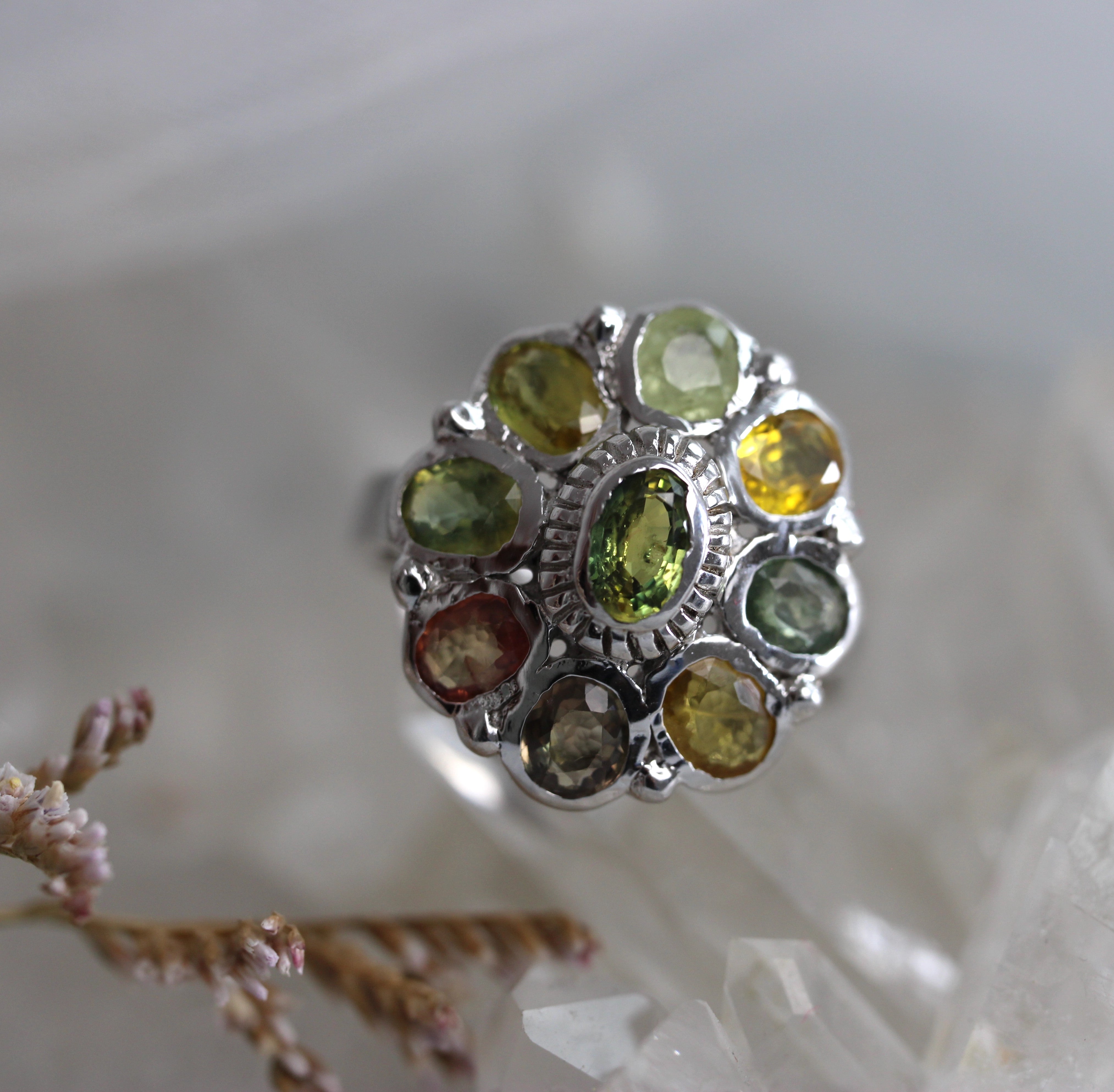 VINTAGE BIJOUX - Yellow Green Sapphire Cluster
