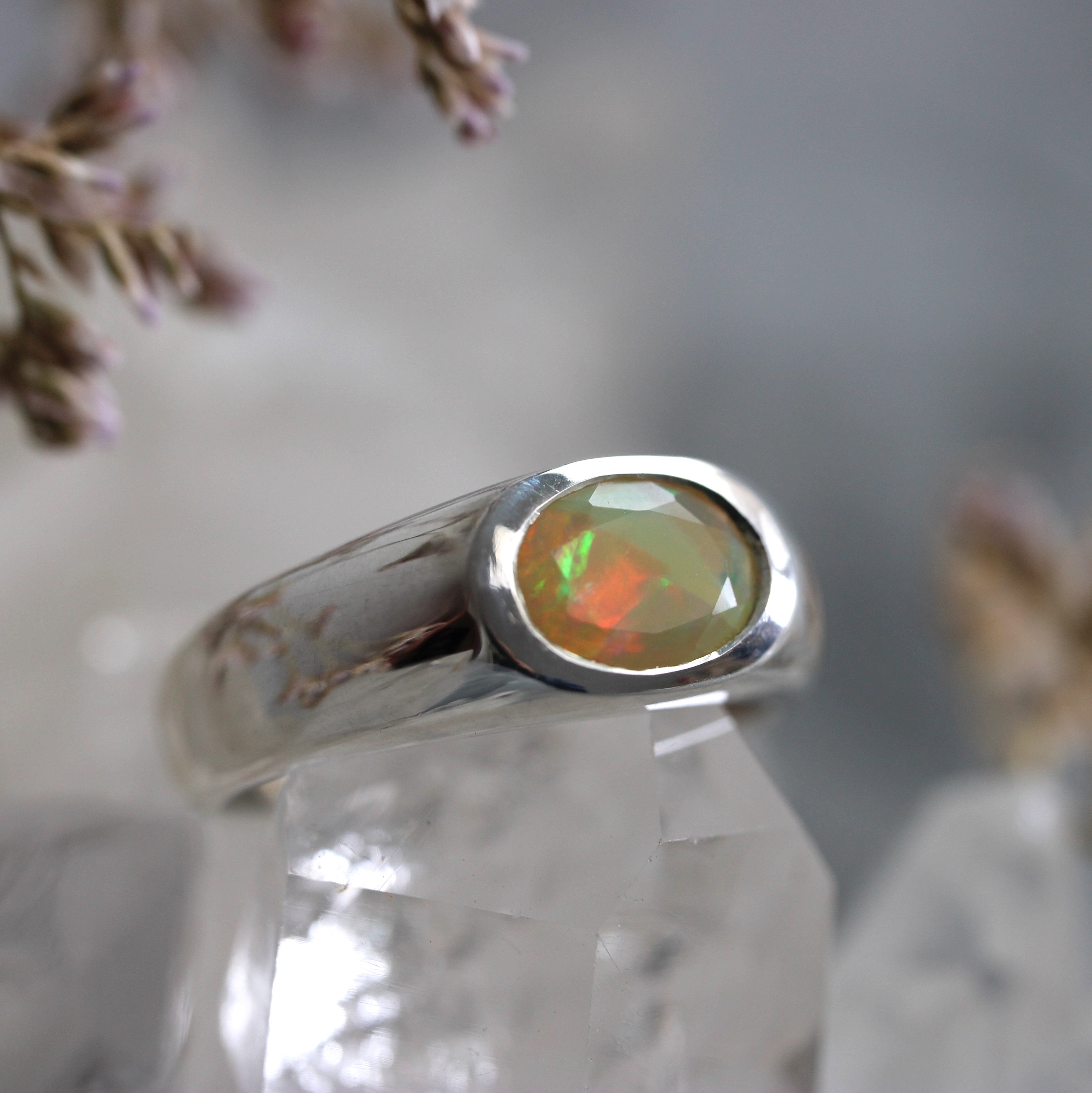 VINTAGE BIJOUX - 70s Sterling Silver Ethiopian Opal Ring