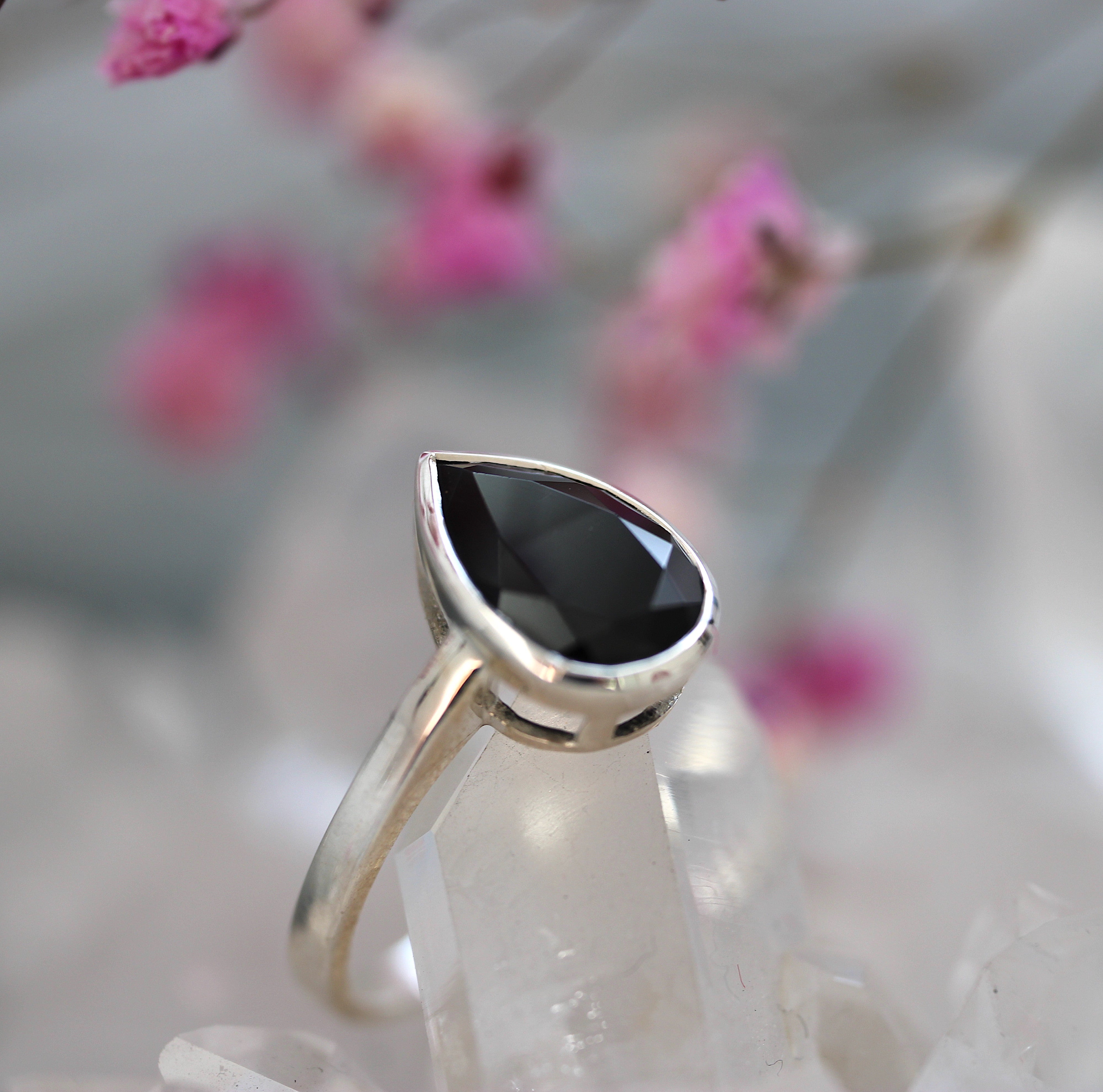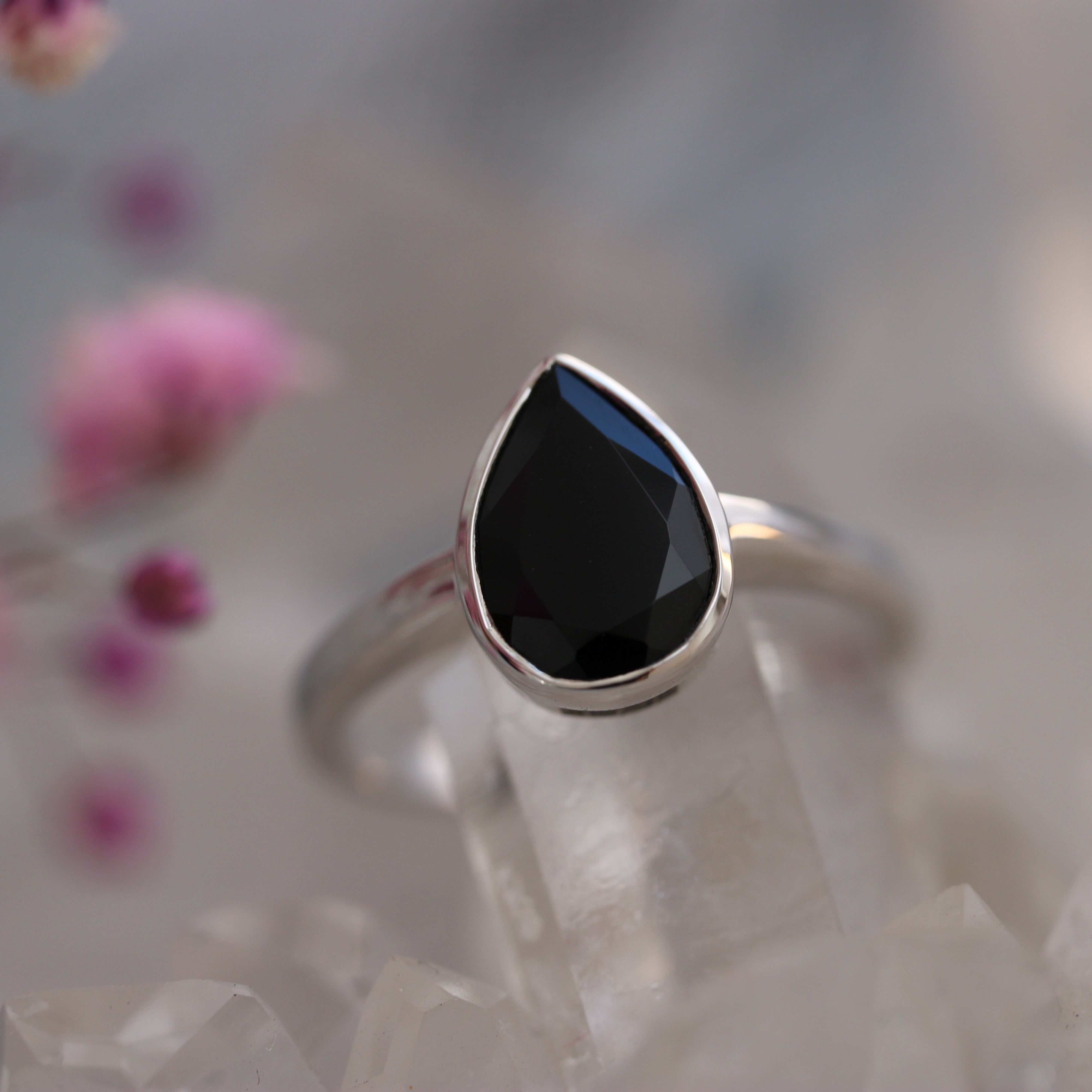 Big 12x10mm Black Tourmaline Pear Ring - Ready to Ship
