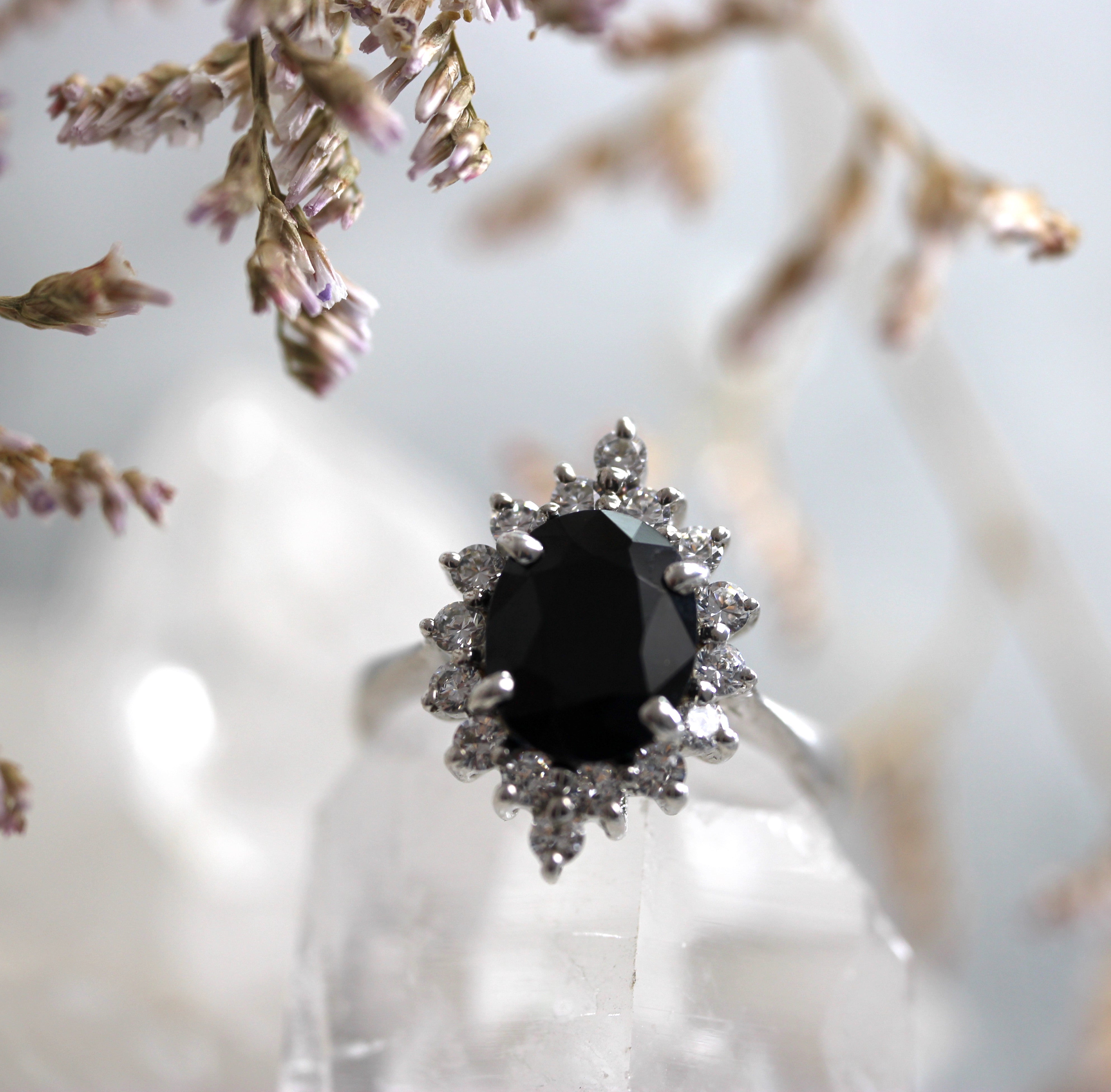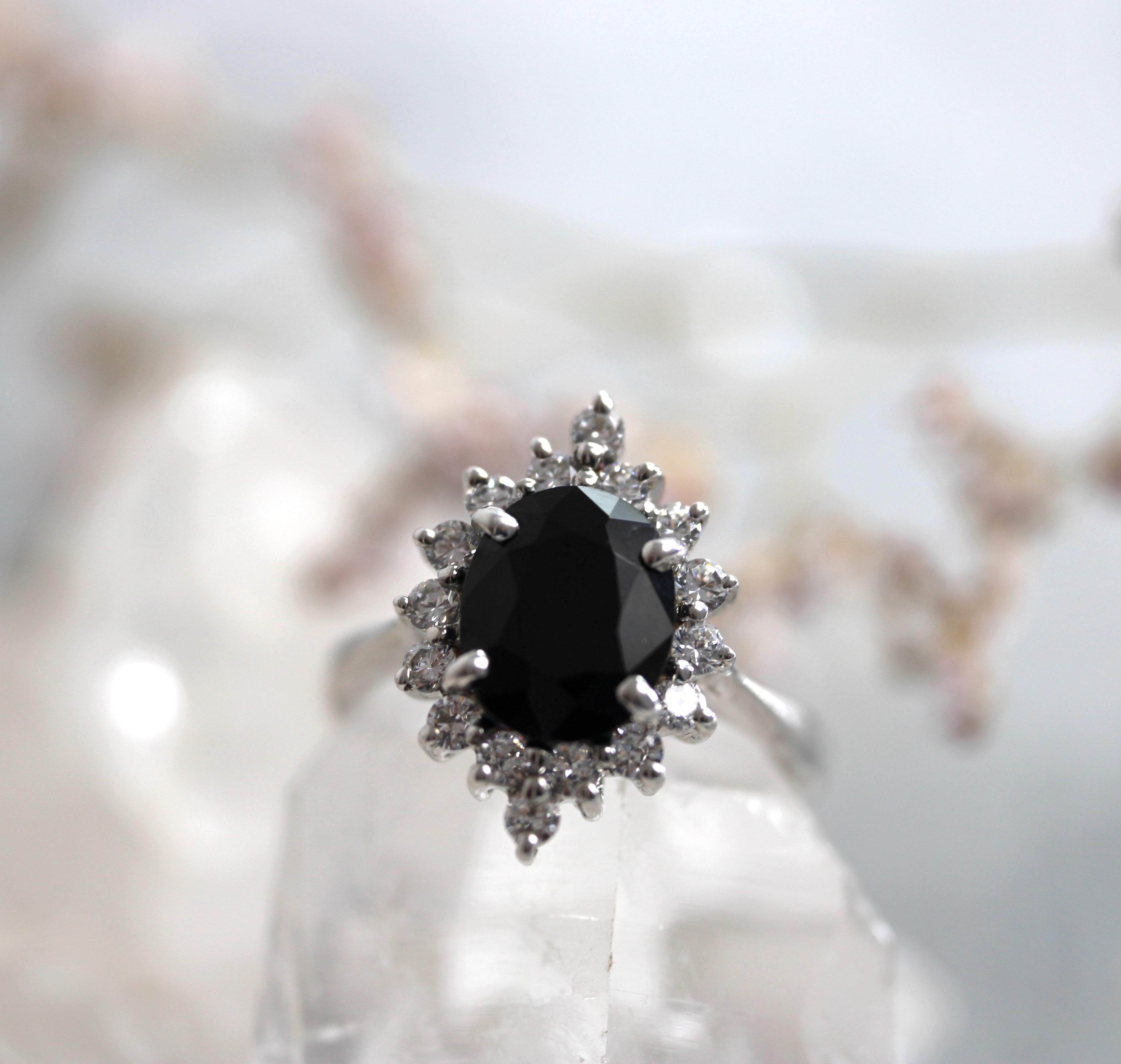VINTAGE BIJOUX - 3.39ct Dark Blue Sapphire Cluster Ring
