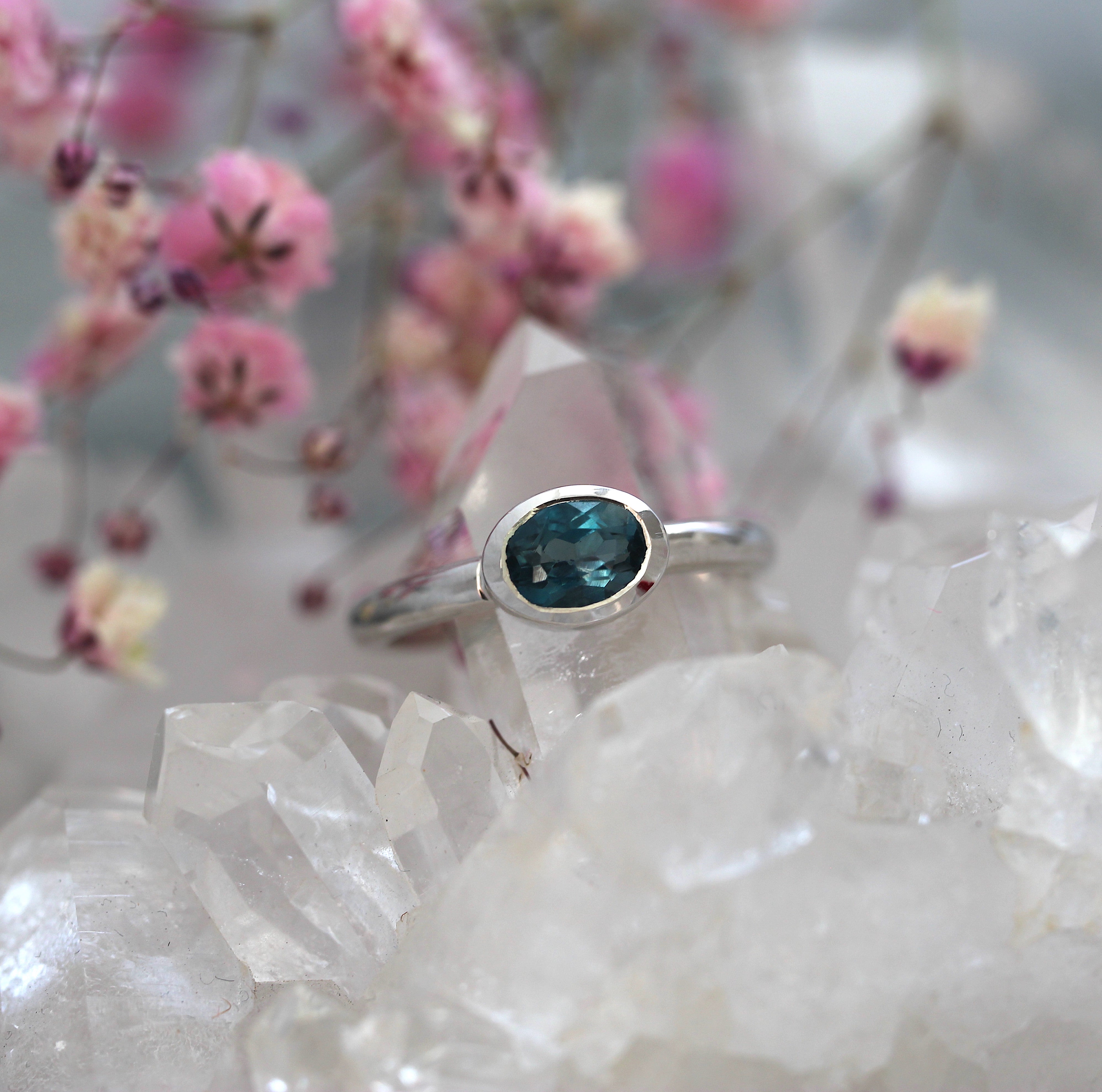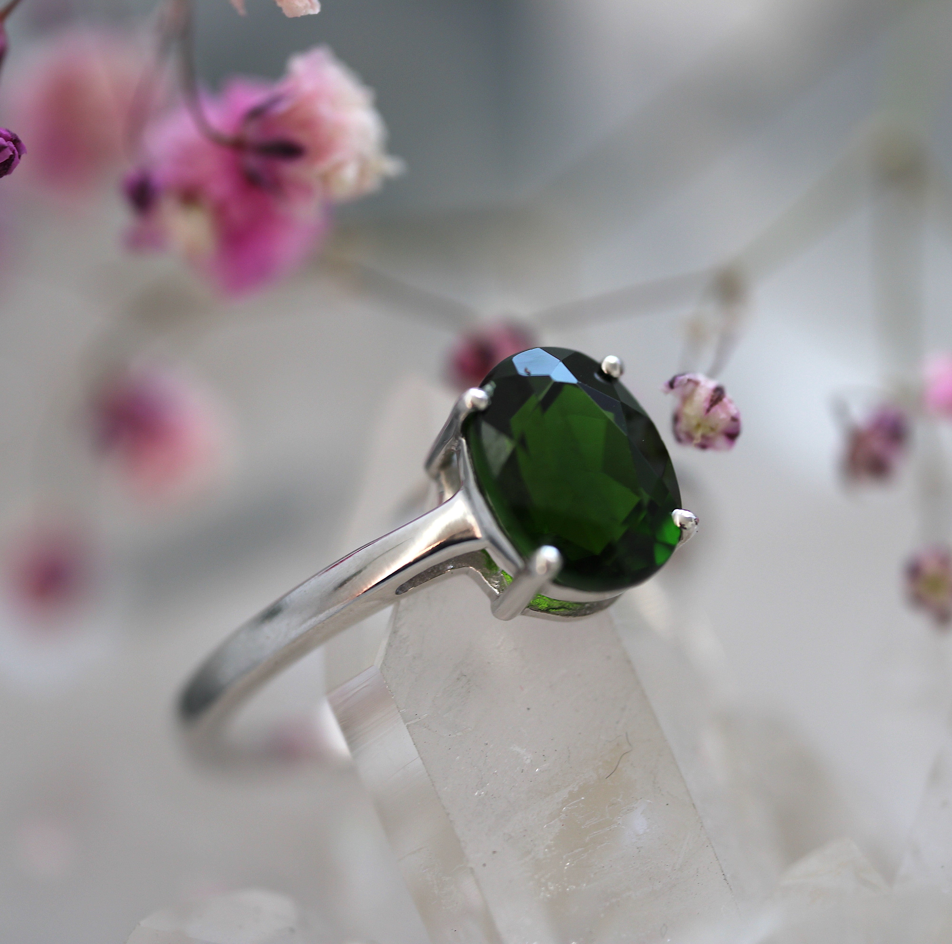 Silver ring with a green gemstone on a reflective surfaceSilver ring with a green gemstone on a reflective surface by windfall jewellery