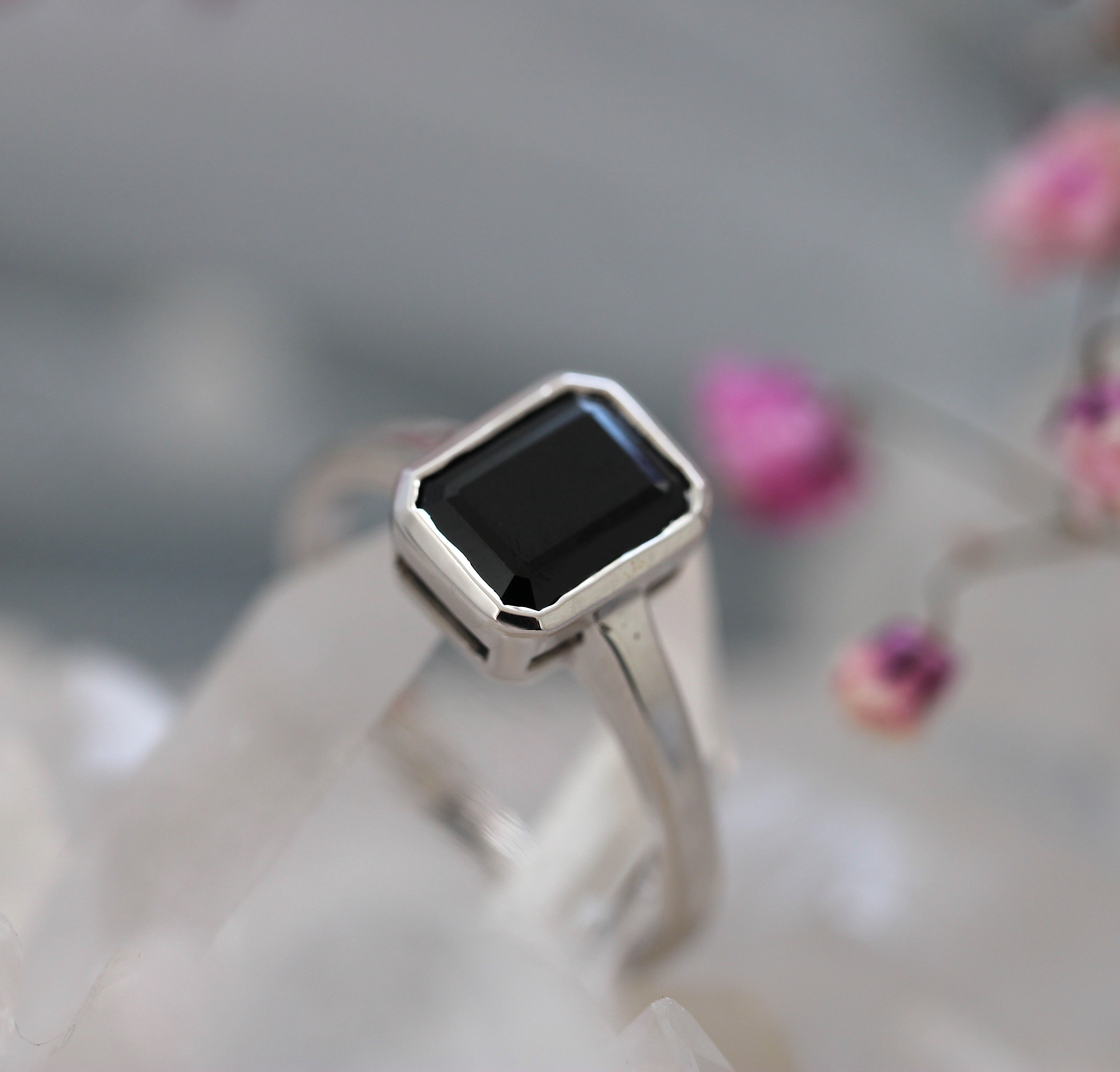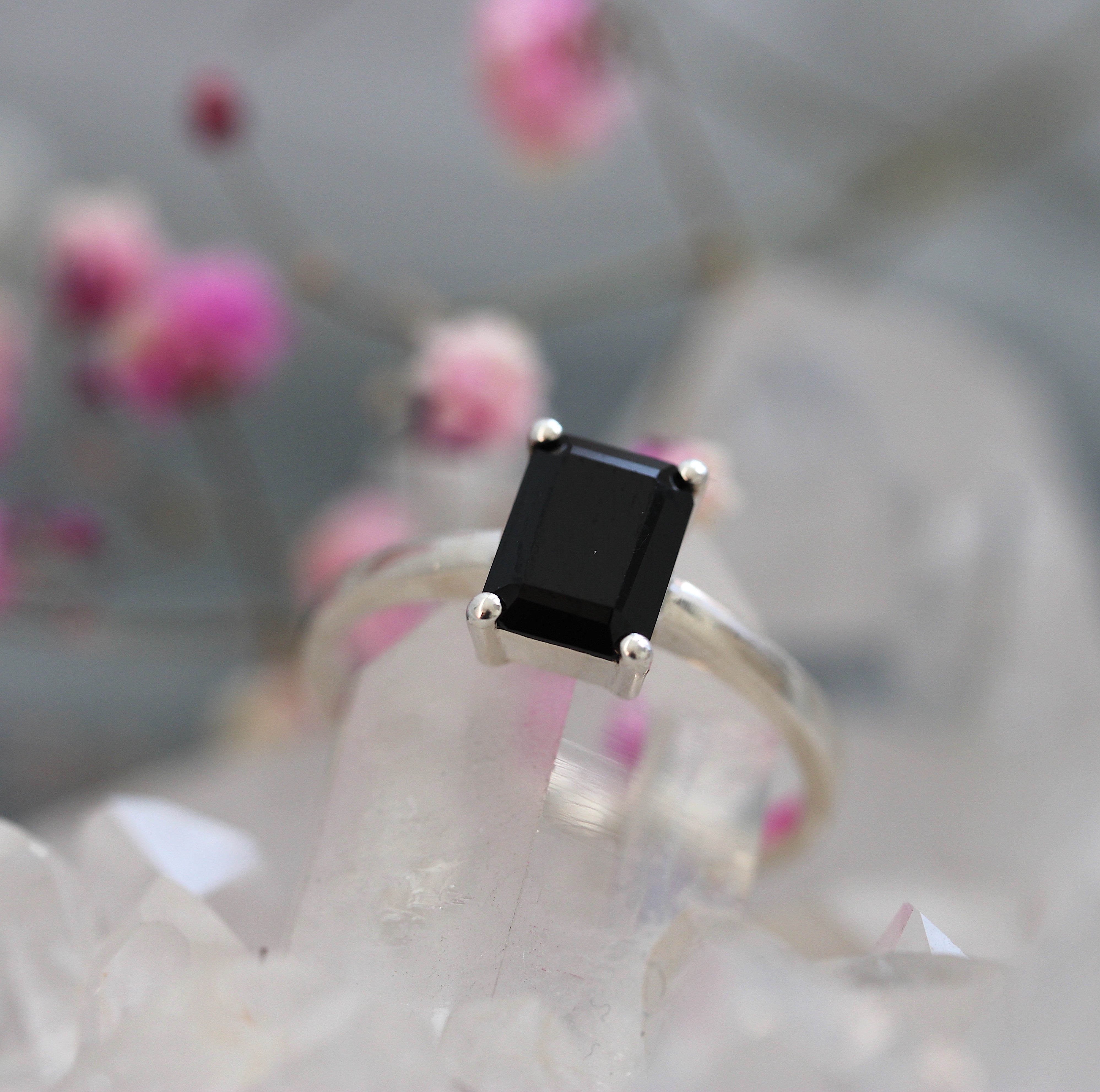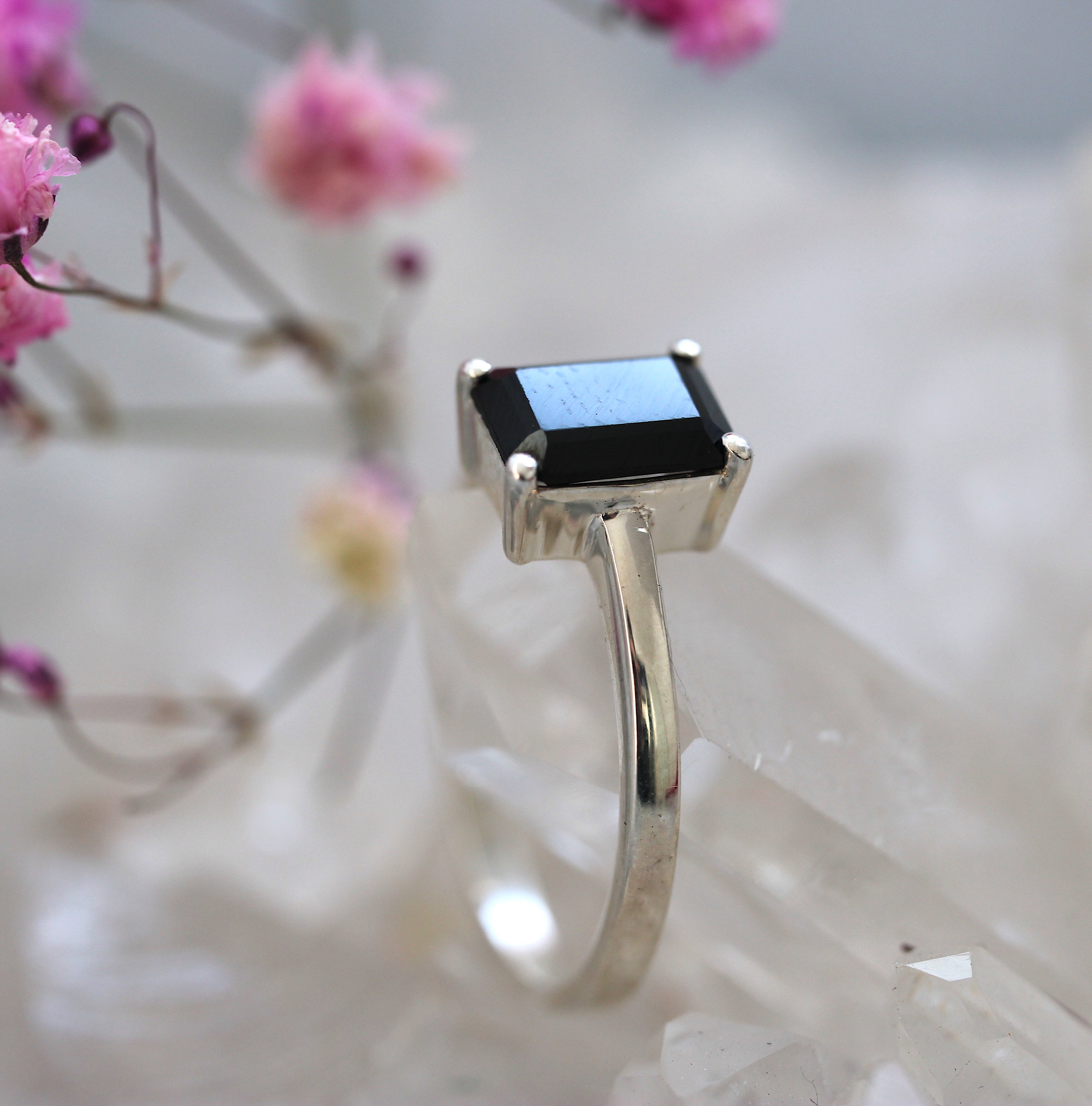 Black Tourmaline Emerald Cut Ring - Ready to Ship