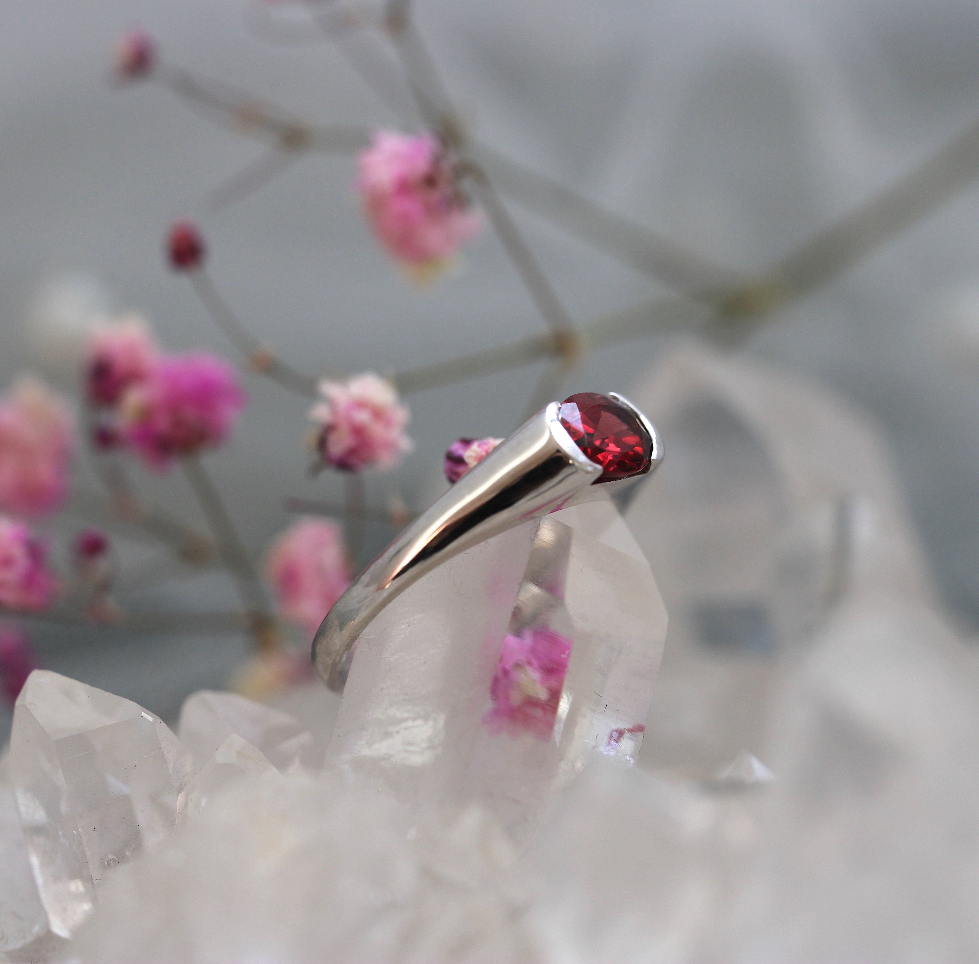 Handcrafted red heart gemstone ring in sterling silver from the Juicebox Jewels collectionHandcrafted red heart gemstone ring in sterling silver from the Juicebox Jewels collection