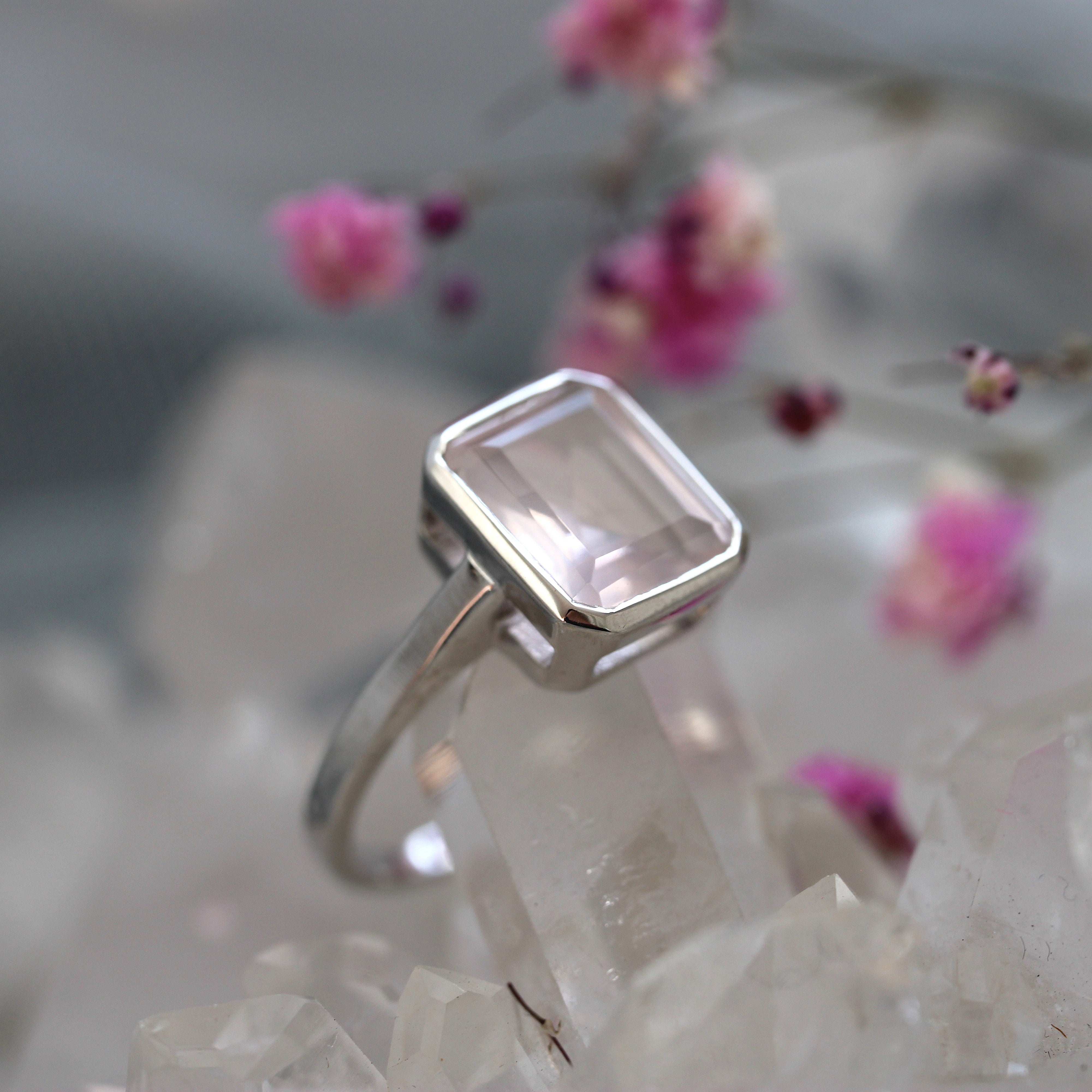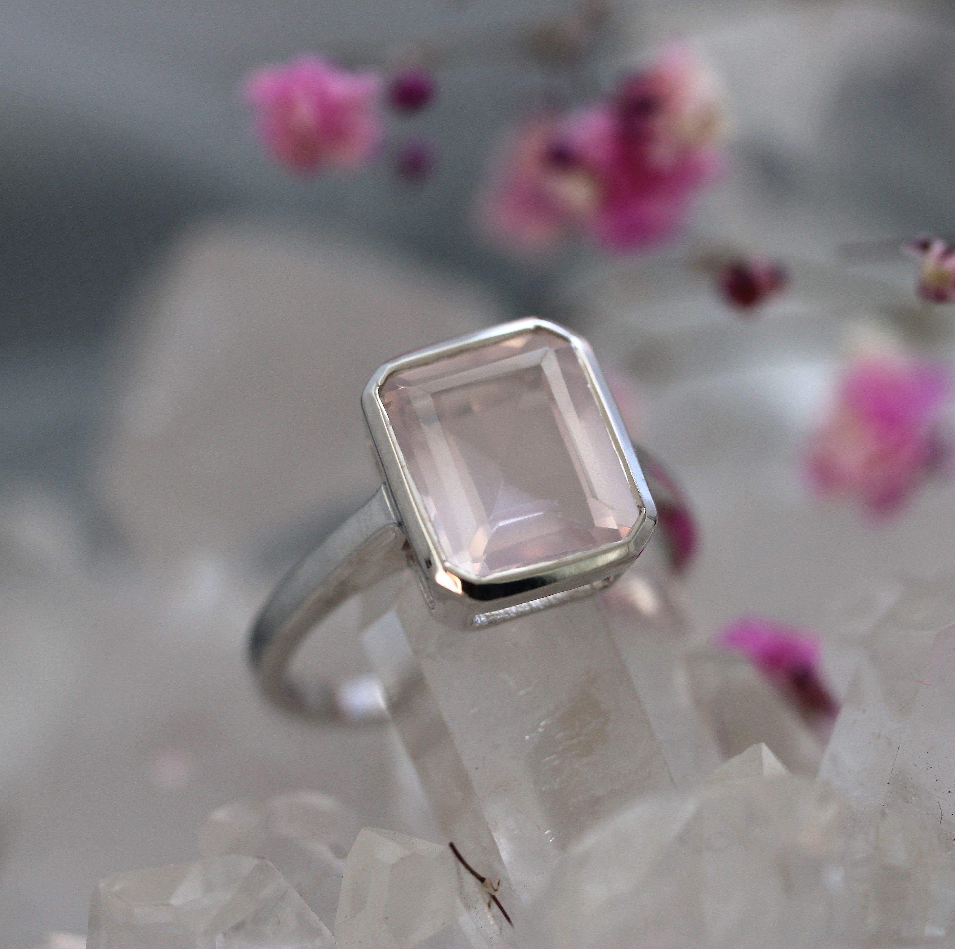 Blush Aura - Rose Quartz Ring - Bezel Set - Ready to Ship