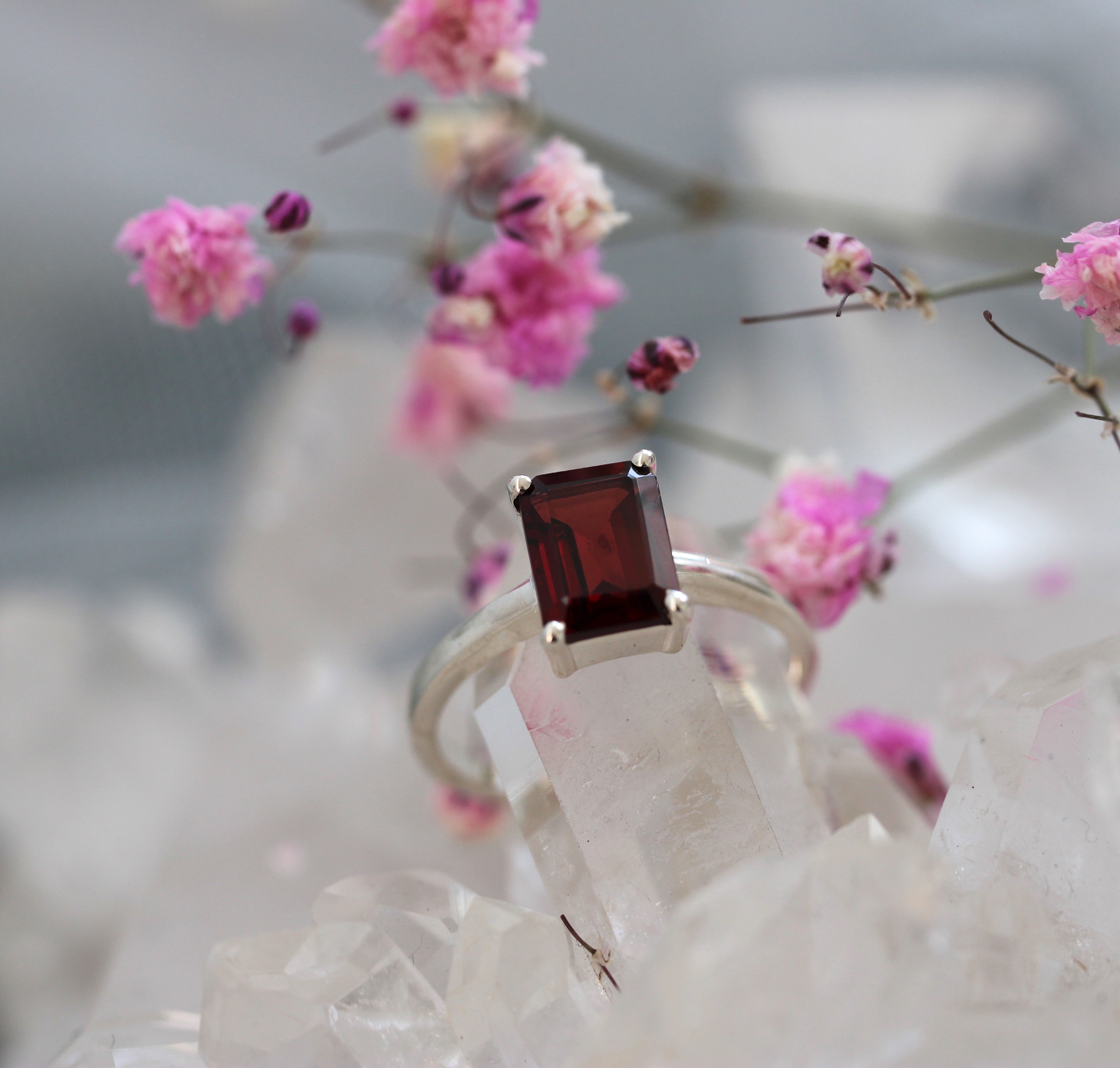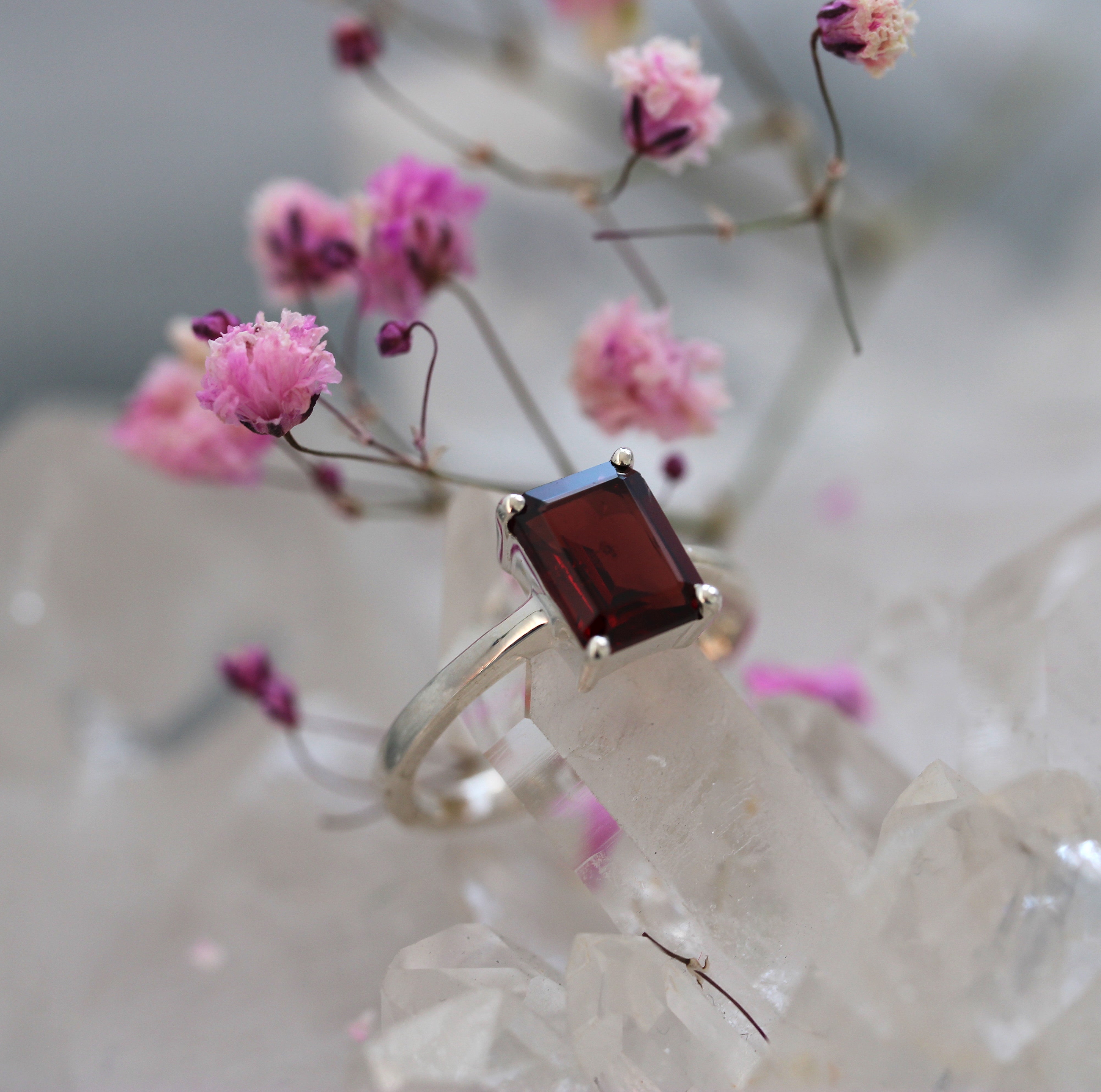 Garnet Emerald Cut Ring - Bezel Set - Ready to Ship