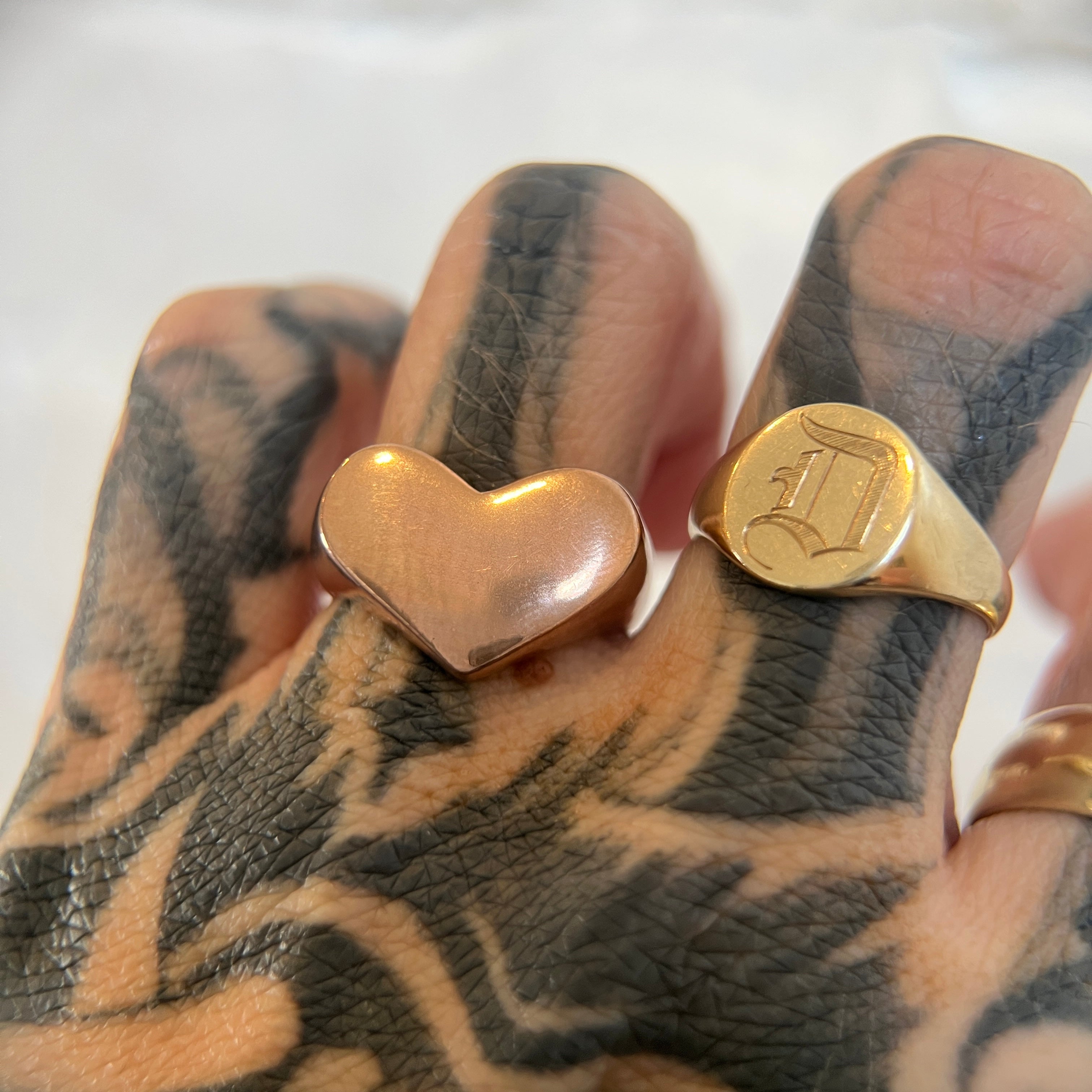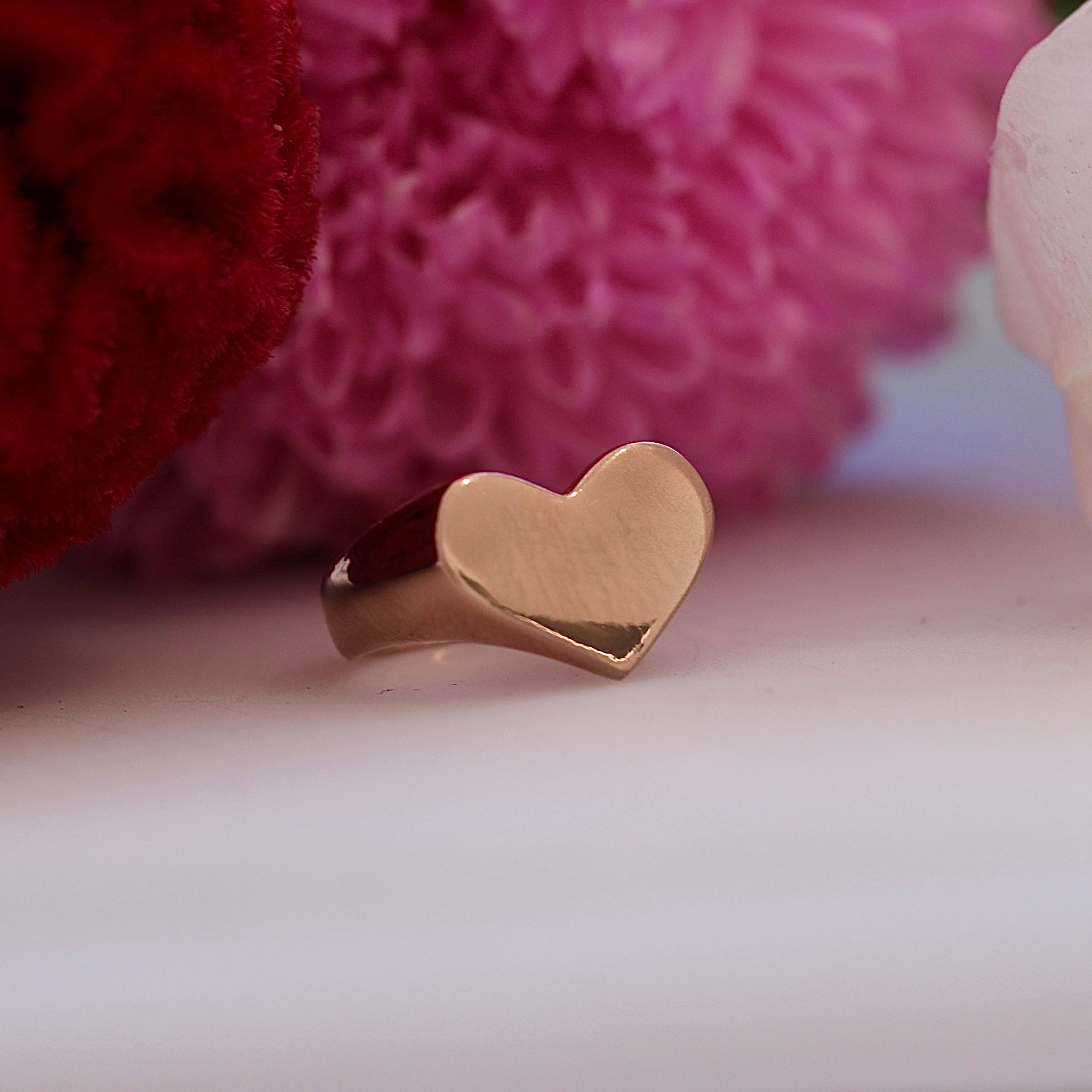 SALE - Solid Heart Signet - 9ct Rose Gold - Size O