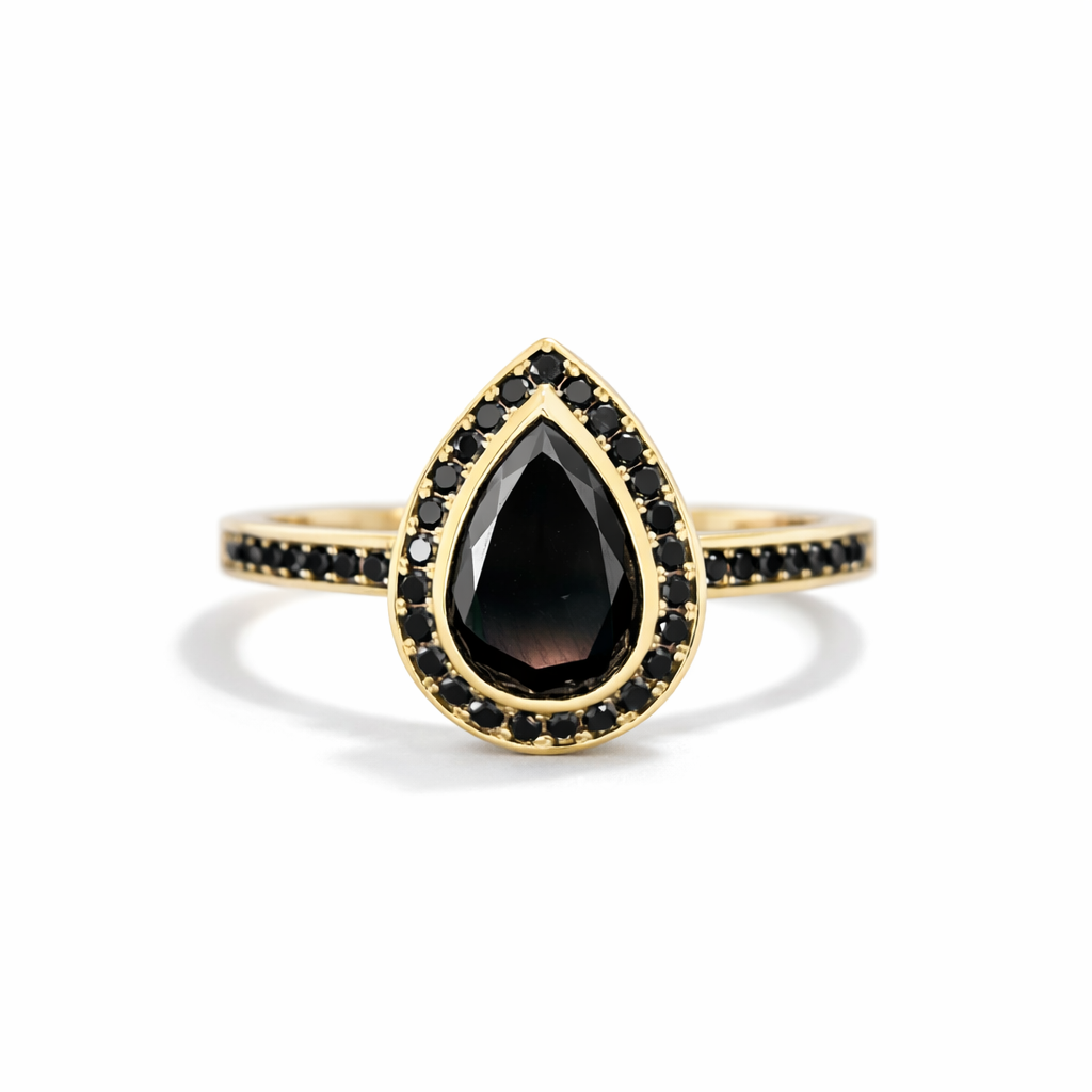 Pear Halo Ring - Bezel Set