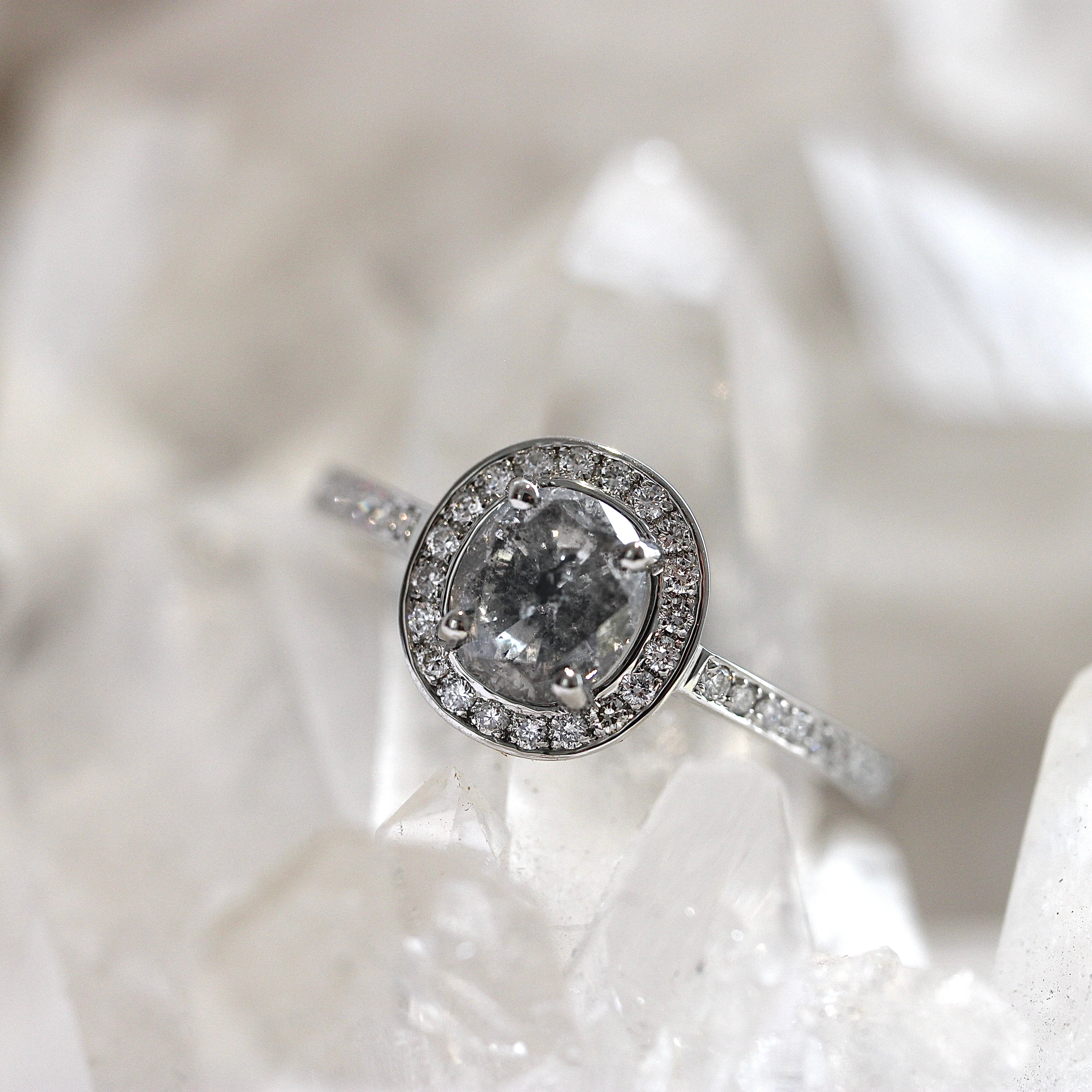 SALE - Salt & Pepper Diamond Halo - Size Q